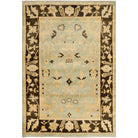 Oushak OSH112B Light Blue Brown area rug from the Safavieh Oushak Collection. Hand-knotted with precision using traditional patterns, this stylish rug is crafted from 100% premium wool for a soft and luxurious feel. The luster wash finishing adds a plush touch, making it comfortable underfoot and visually appealing in any room.