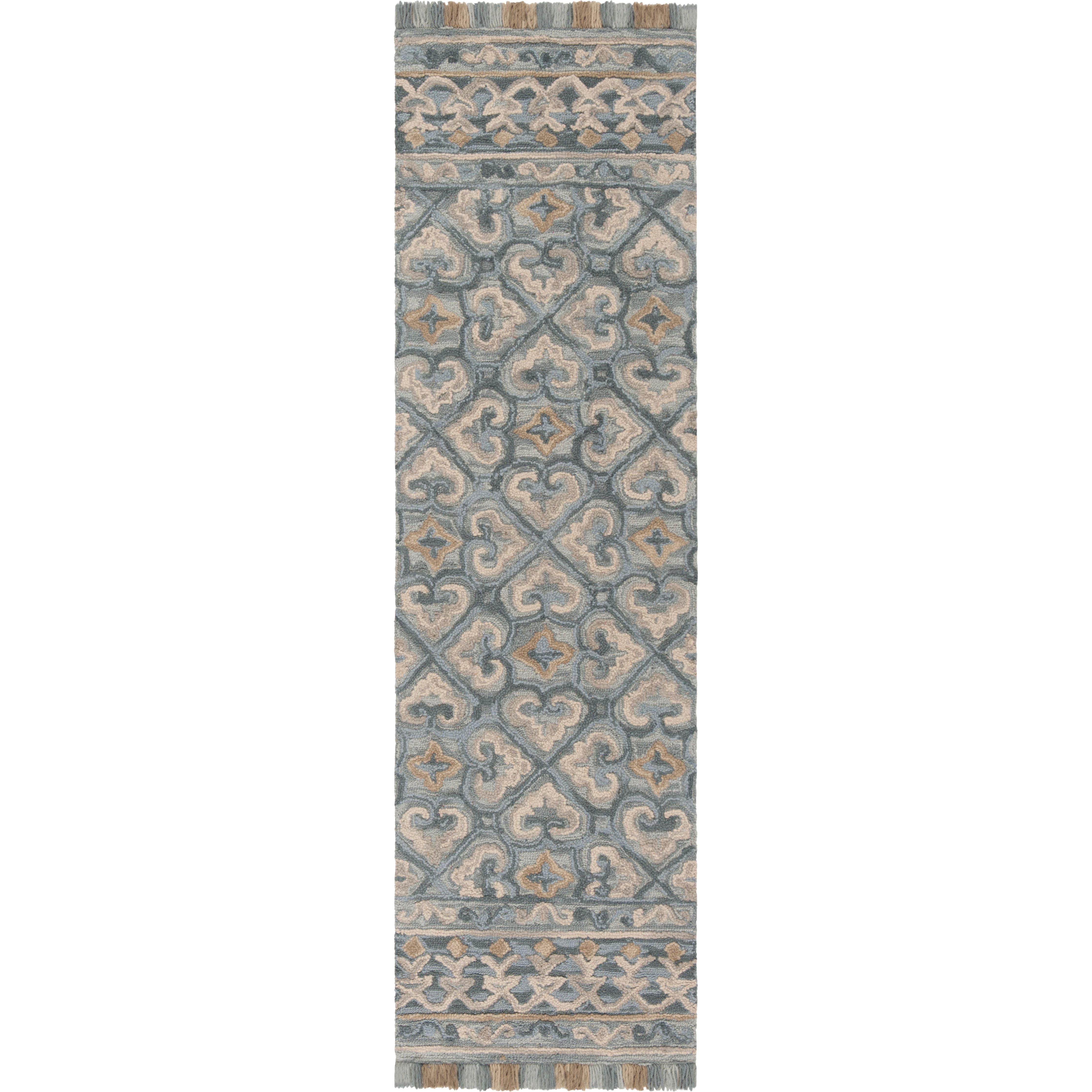 Blossom BLM420A Light Beige Blue rug from Safavieh's exquisite Blossom Collection. Embrace the allure of nature with its contemporary floral patterns that effortlessly elevate the aesthetics of any living space. Crafted by hand using 100% premium wool, these rugs boast superior quality and longevity. Utilizing modern hand-tufting techniques, each rug is designed for enhanced durability without compromising on style.