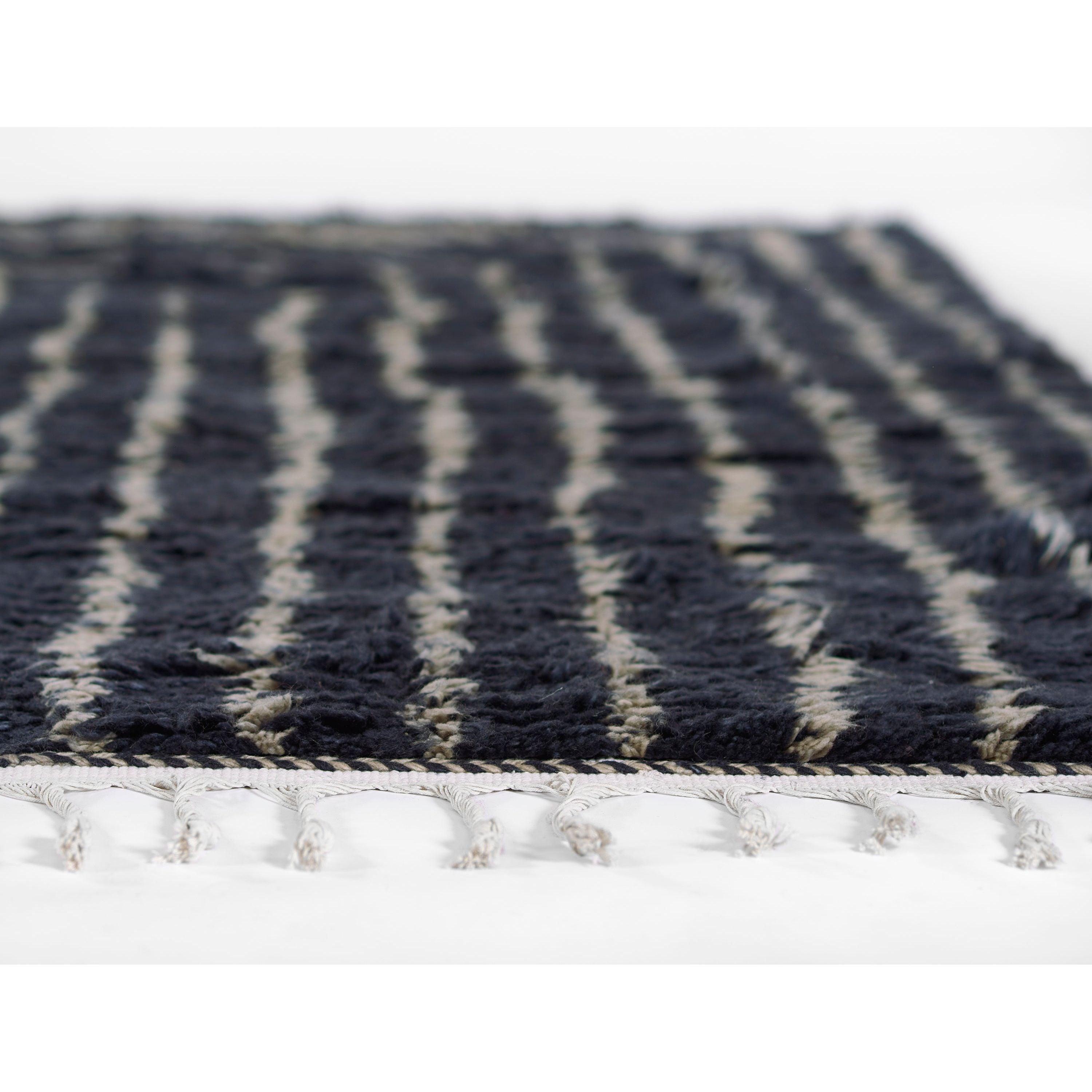 Introducing Neo Nem 4 Navy, a luxurious addition to your home decor. Crafted with care, these hand-woven shag rugs are made from 100% premium New Zealand wool, spun by skilled artisans using mill-spun yarns. Sourced from India, the yarn is dyed locally in the traditional Vat Dyeing method for rich and lasting colors.