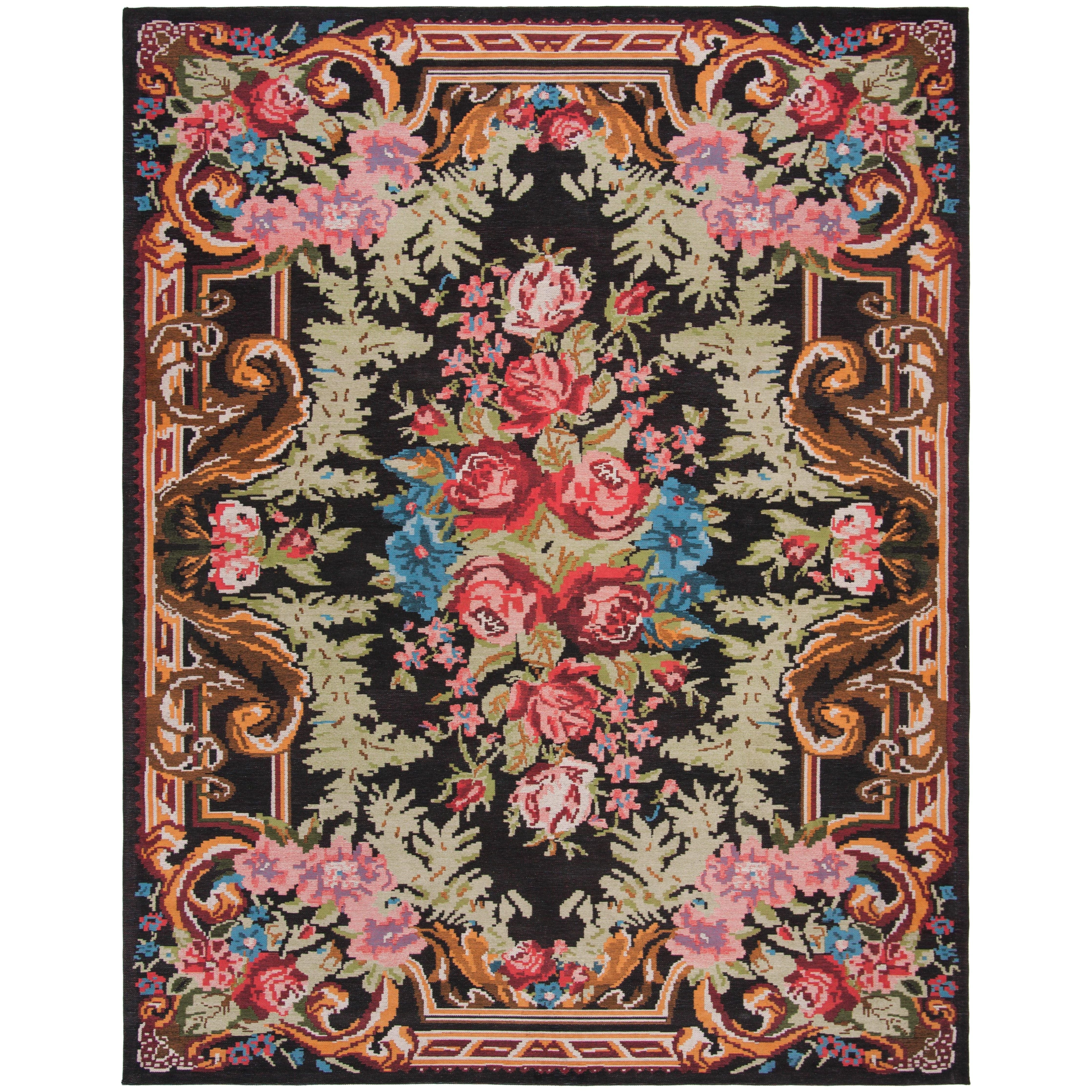 Clv Classic Vintage CLV301A Black Multi rug from the Classic Vintage Collection. This stunning piece transforms traditional rug artistry into modern decor, featuring an urban-mod style and antique-finish flat weave design. Crafted from 100% pure cotton, it boasts a beautiful blend of distressed-look colors that breathe new life into classic motifs. With a thickness of approximately 0.35 inches, this rug is the perfect floor covering to infuse classic charm and trendy colors into contemporary or transitional home settings.
