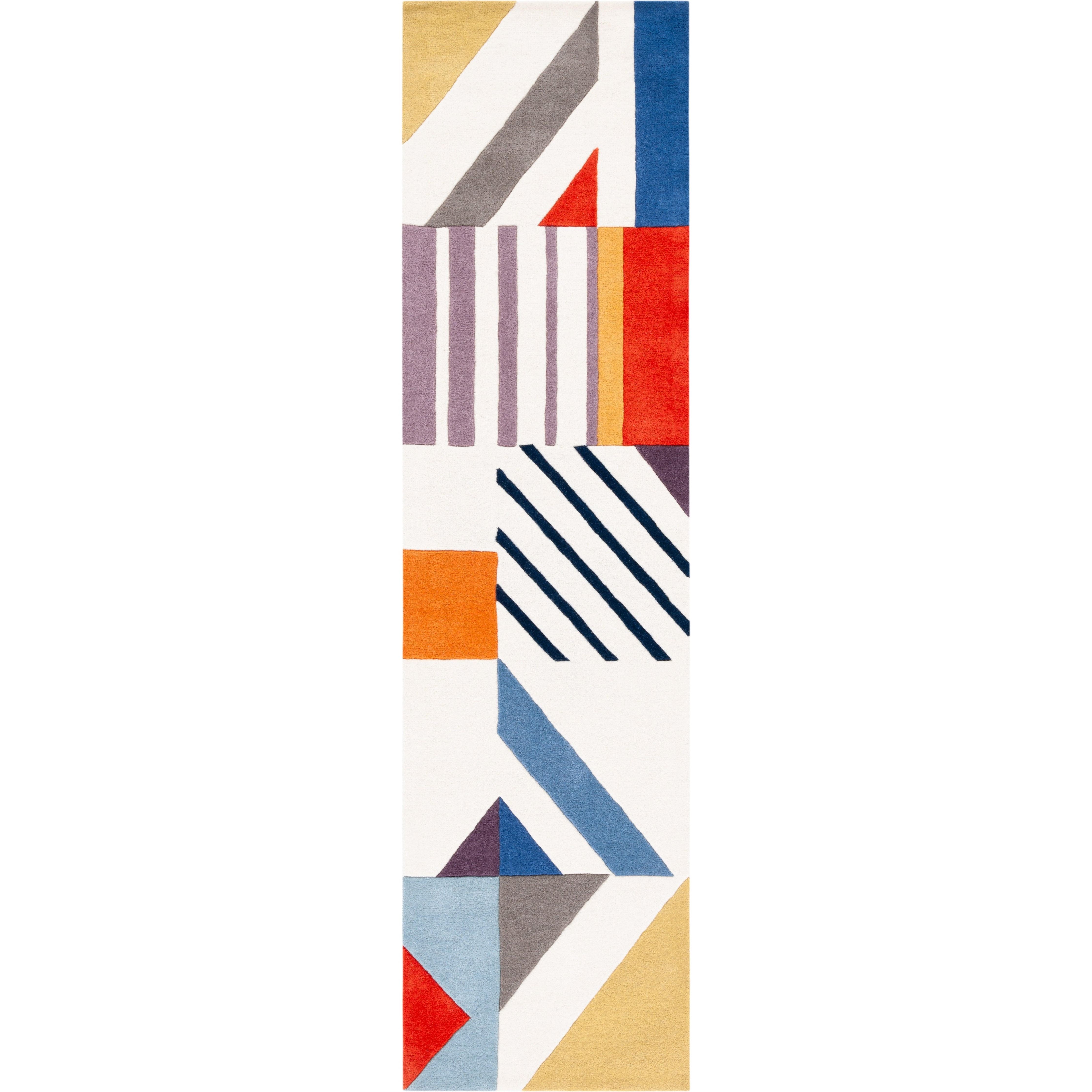 Fifth Avenue FTV120A Area Rug Collection, a stunning display of retro-cool Art Deco design in vibrant colors and luxurious textures. Crafted from 100% pure wool, each rug features bold hues and eye-catching patterns that will elevate the decor of any room or modern office space. With a plush thickness of approximately 0.5 inches, these rugs offer both style and comfort.
