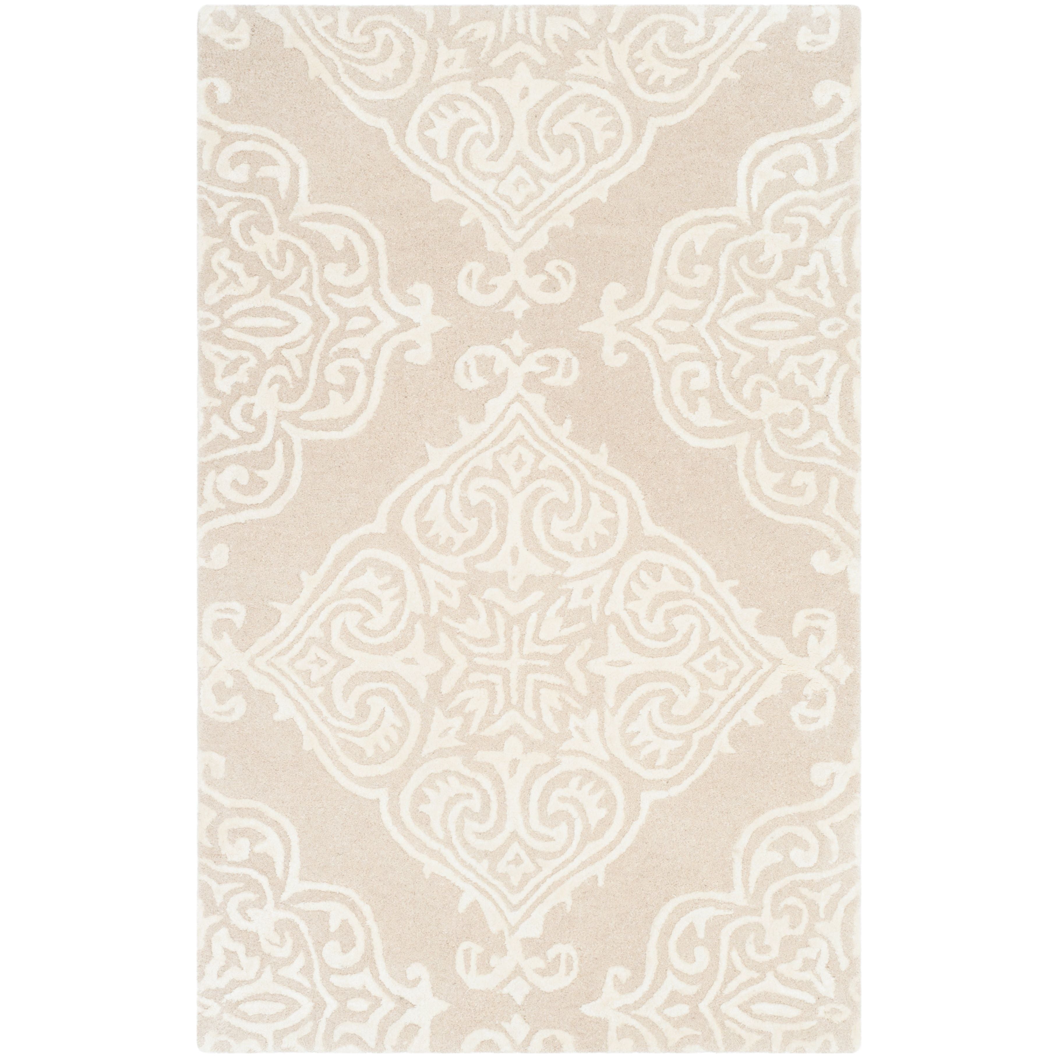 Glamour GLM568E Beige Ivory area rug from the Glamour Collection. Crafted with traditional elegance in mind, this rug is a perfect addition to any modern home decor. Hand-tufted from 100% pure wool, each rug boasts classic designs on a soft, medium cut pile surface. Ideal for spaces like the living room, family room, or master suite, the Glamour rug adds a touch of sophistication to any room with its timeless appeal and approximately 0.5-inch thickness.