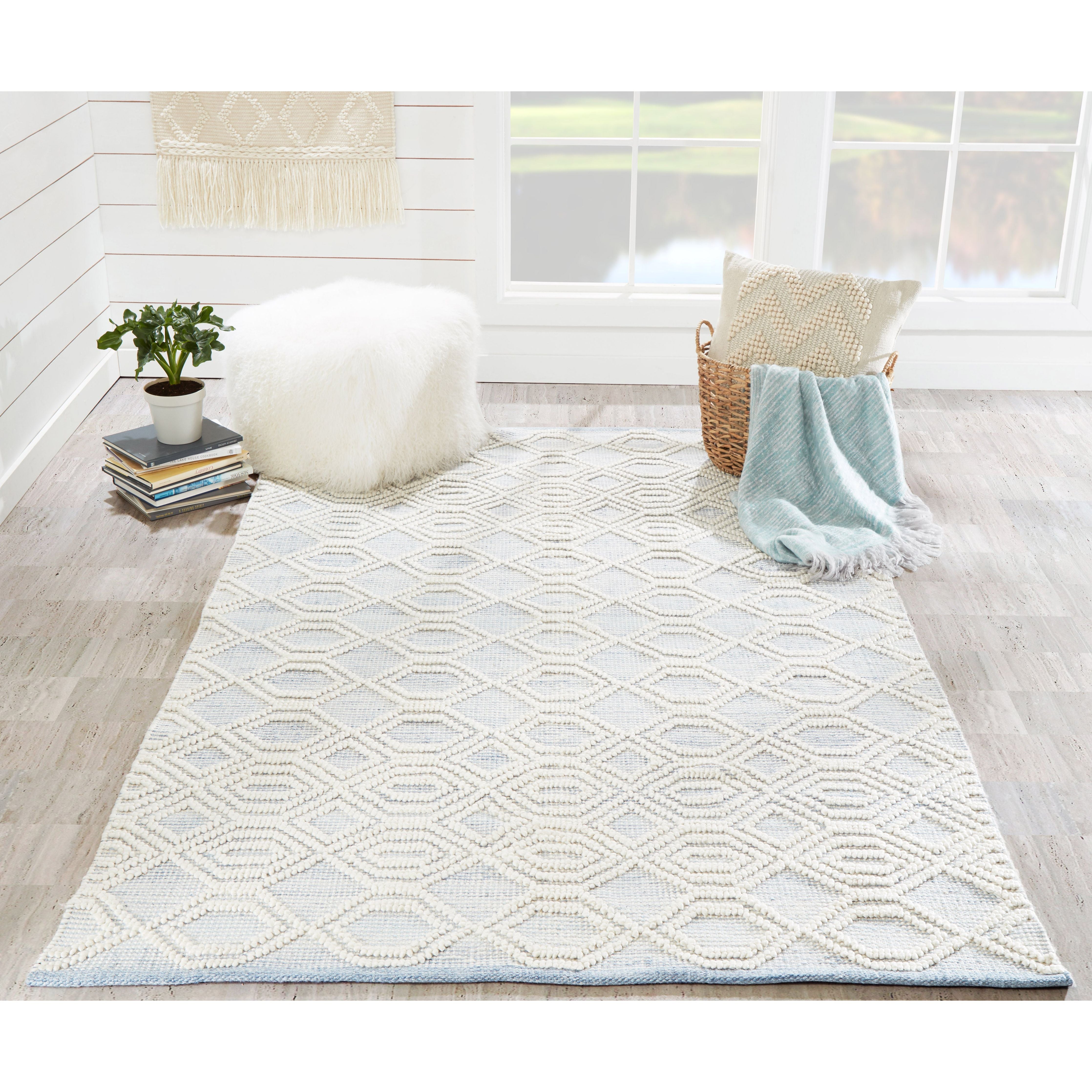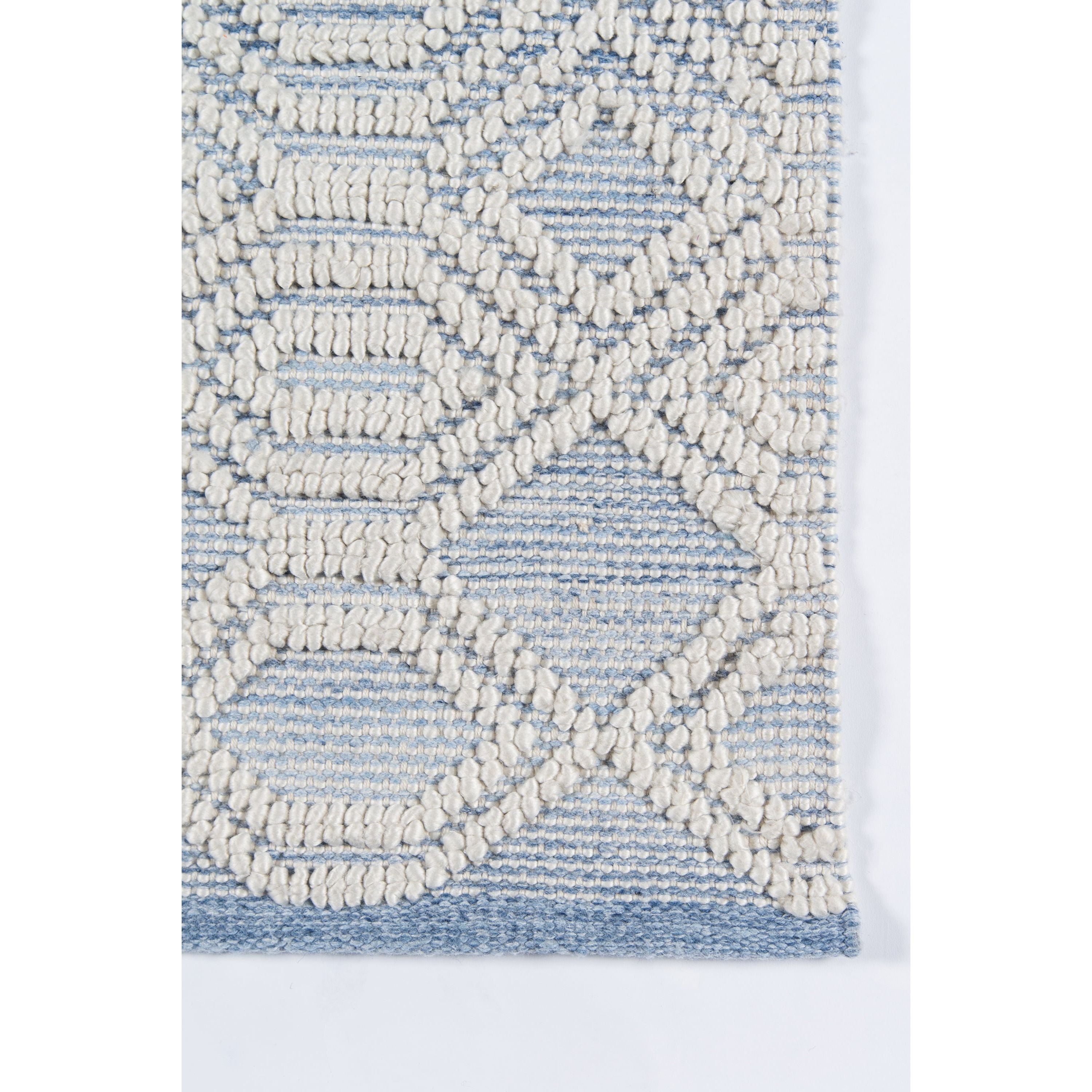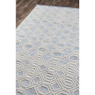 Hermosa Hrm 1 Light Blue, a stunning transitional area rug collection that brings a touch of geometric flair to any space. With its repeating patterns of diamonds, squares, and evolving elliptical shapes, this rug is a stylish choice for those who appreciate modern design. The soft hues of light blue, gray, and white create a calming atmosphere in any room, while the innovative PET fibers ensure durability and sustainability.