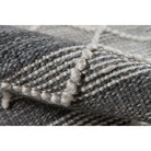 Hermosa Hrm 2 Grey area rug, a stylish addition to any space with its repeating geometric shapes. This collection features diamonds, squares, and evolving elliptical patterns in soft light blue, gray, and white hues, adding a touch of sophistication to your interior décor. Crafted with innovative PET fibers and exquisite hand-tufted techniques, these rugs exude authenticity and elegance.