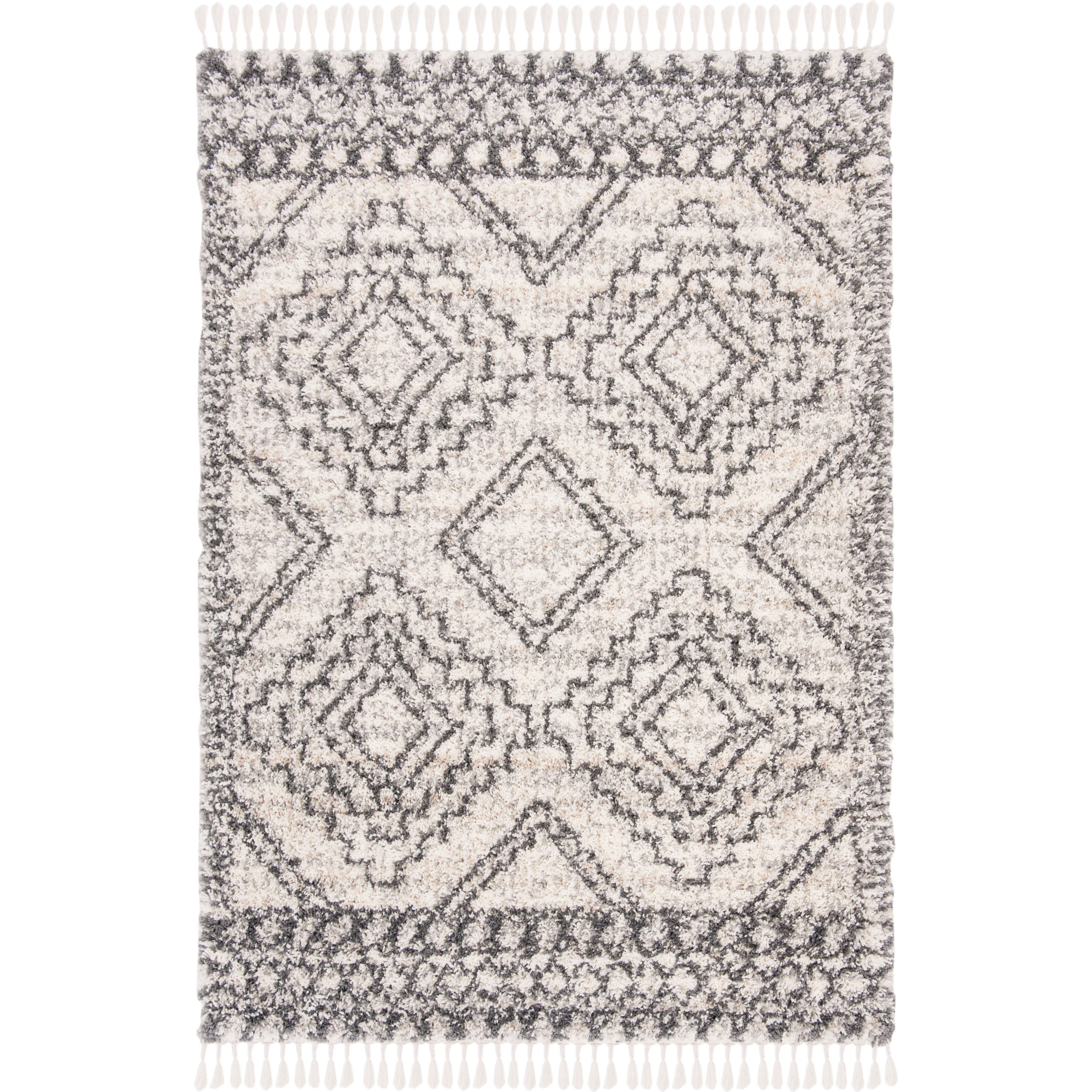 Melrose Shag 900 SGML937A Ivory Grey rug, a stunning addition to any modern living space. The vibrant color tones and intricate quatrefoil design make it a standout piece in the Safavieh collection. Crafted with a soft and plush pile, this rug is not only visually striking but also provides comfort underfoot.