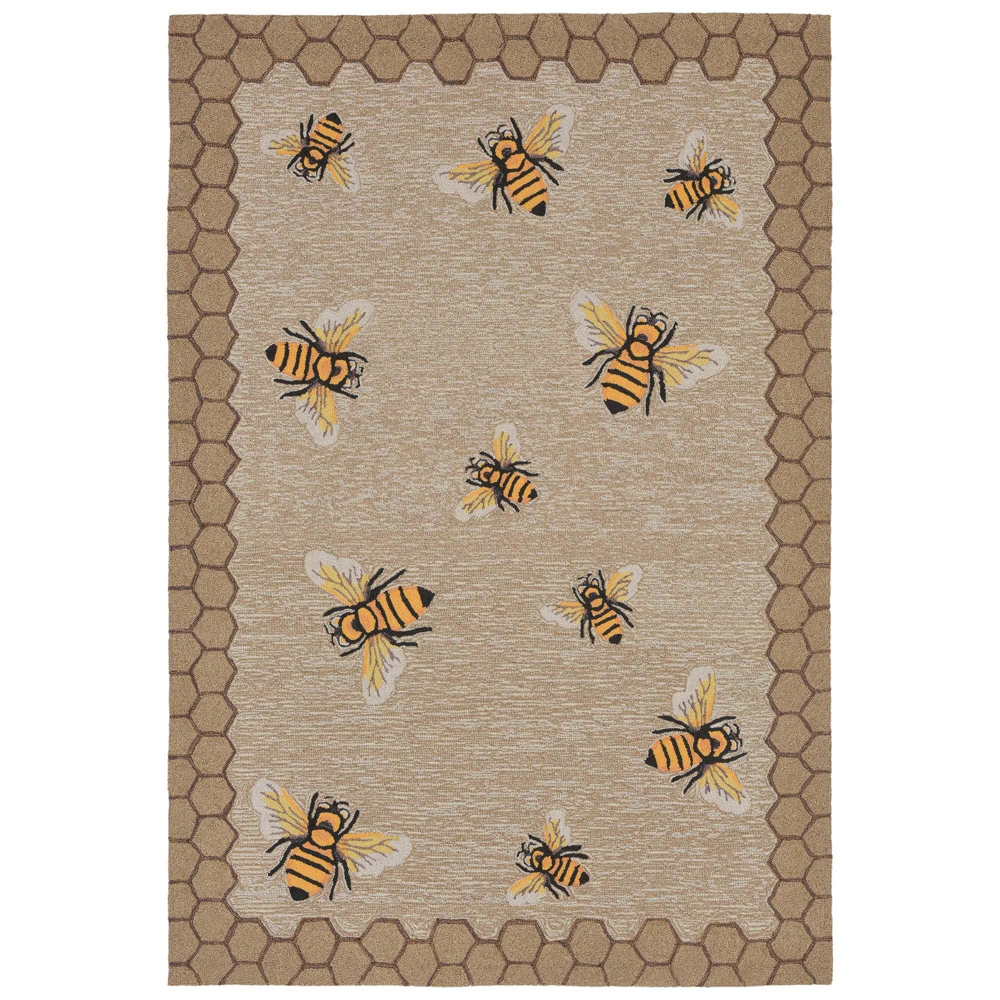 charming Frontporch Honeycomb Bee Natural mat, a perfect addition to your home decor. This whimsical and decorative piece boasts a unique honeycomb bee design with rich blended colors that effortlessly complement any interior style. Crafted in natural tones, this mat is an ideal accent for nature enthusiasts looking to infuse their space with a touch of playfulness. Place this transitional mat at your front porch or entryway to welcome guests with its inviting charm.