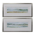 These Watercolor, Coastal Art Prints Are Completed Using Soothing Tones. Shades Of Green, Light Blue, Cream, White, Brown, And Sand Make Up Each Print. Each Print Is Triple Matted With Spacers In Between Each Mat To Create A 3-dimensional Effect. Champagne Silver Frames With Raised Accents Complete Each Piece. Each Print Is Placed Under Protective Glass. Artwork By Ethan Harper.