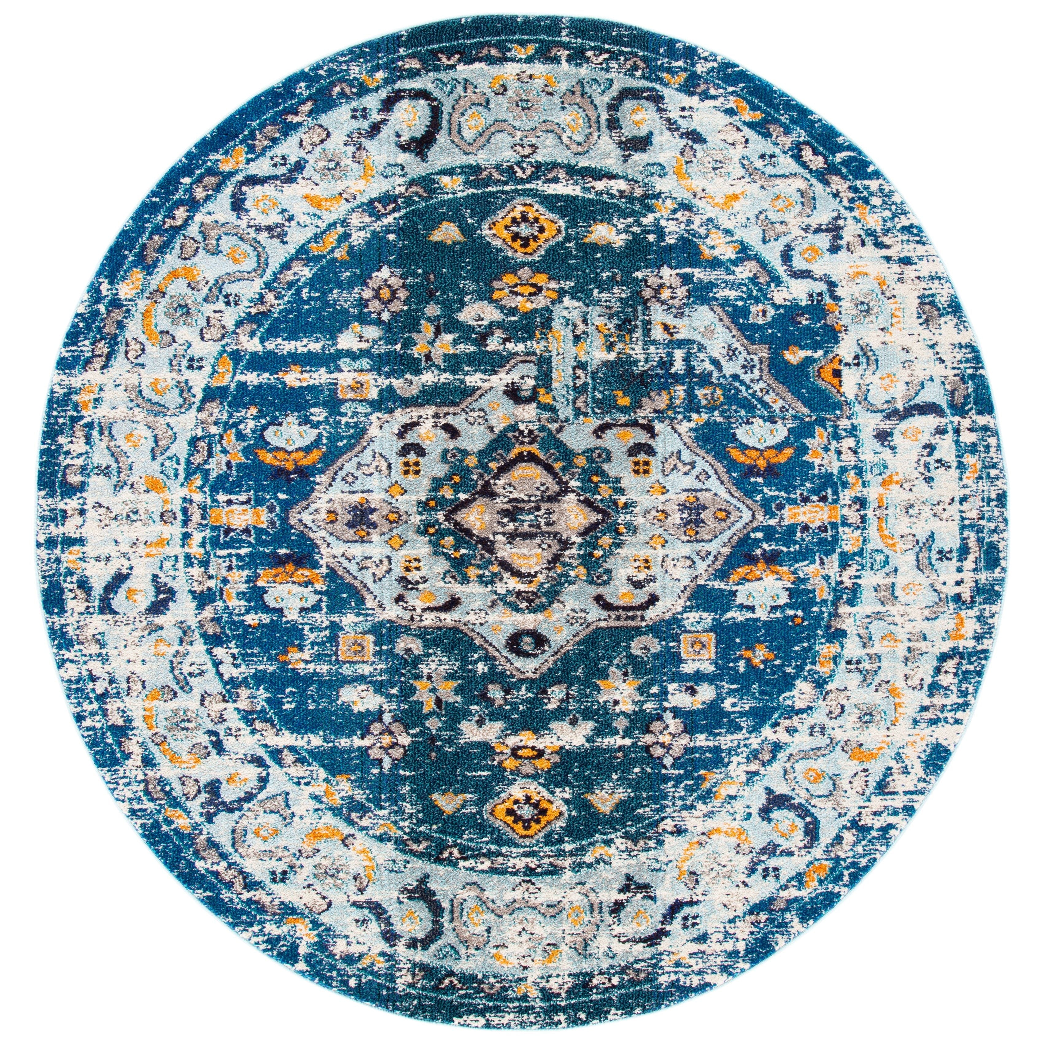 Madison MAD468M rug from the Madison Rug Collection, where classic designs meet modern style. Traditional motifs are rejuvenated with vibrant colors and a distressed, antique finish, giving your space a timeless yet contemporary look. Crafted with soft synthetic yarns, these machine-woven rugs are not only beautiful but also easy to maintain for long-lasting beauty, boasting an approximate thickness of 0.375 inches.
