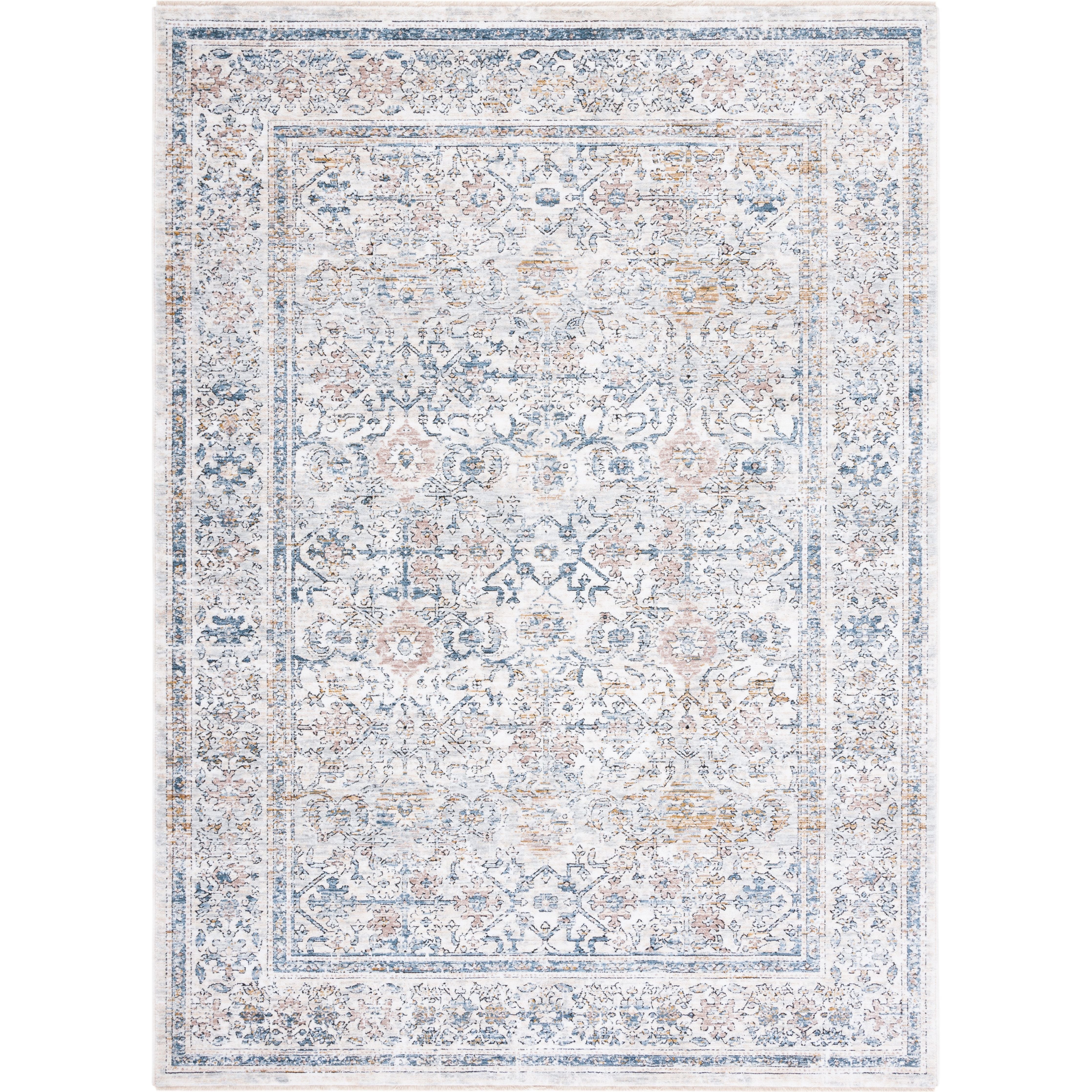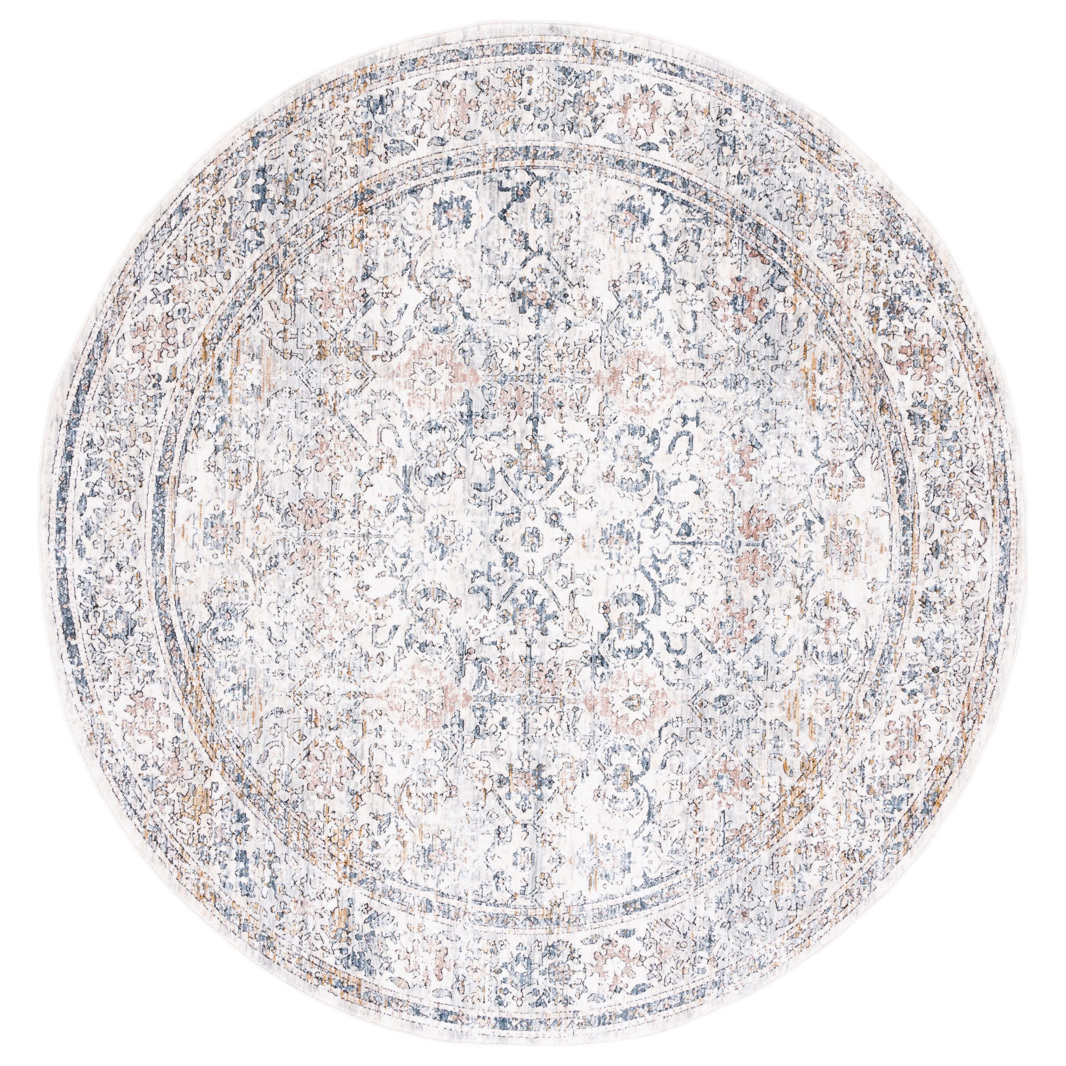 Moondust MND664A area rug from SAFAVIEH, where tranquility meets elegance in a dreamy design. Inspired by traditional oriental patterns, these rugs feature defined borders, fringed edges, and a distressed timeworn look. Crafted with premium viscose and polyester fibers, these machine-made rugs boast a silky smooth sheen and a sleek pile height that effortlessly fits under furniture, with an approximate thickness of 0.25 inches.