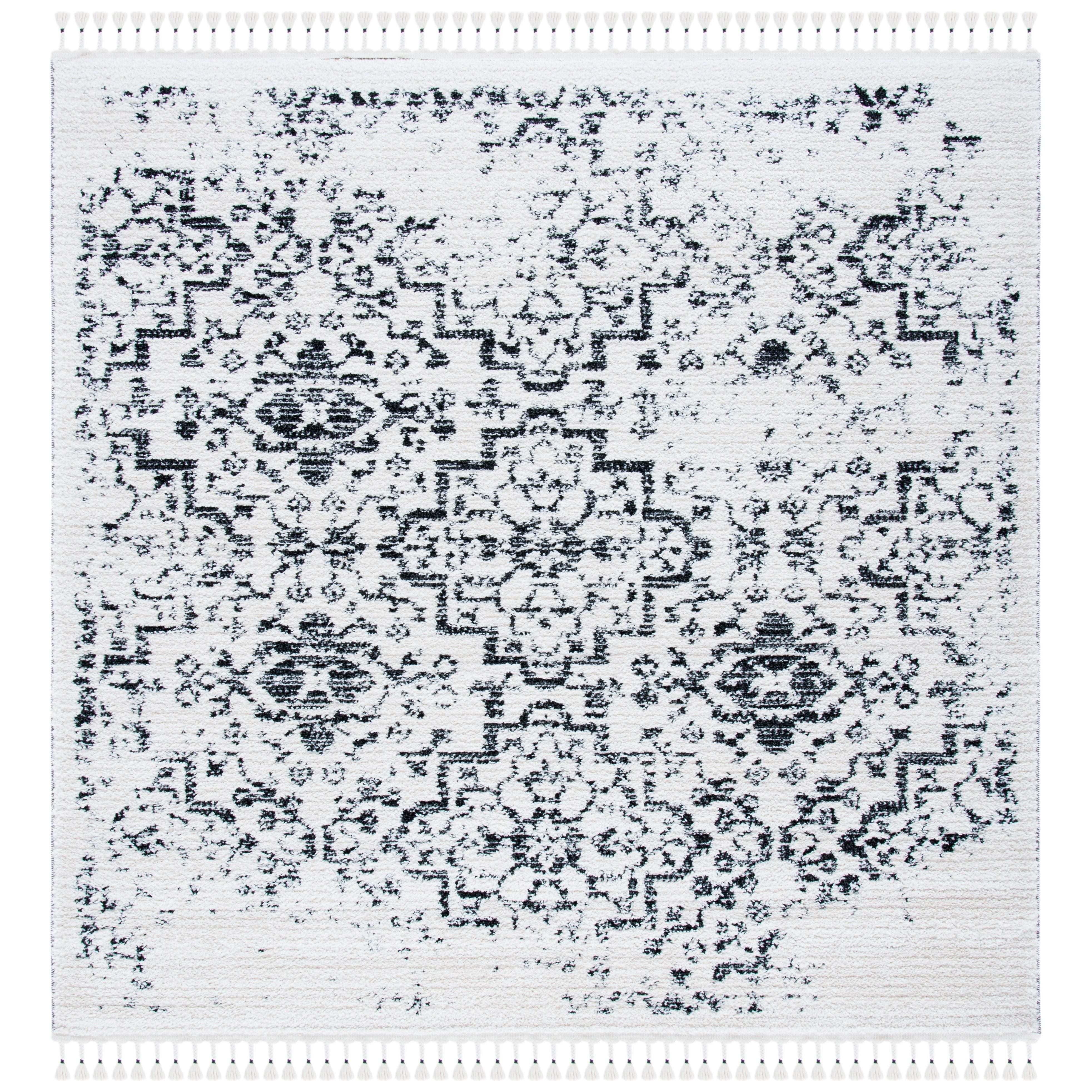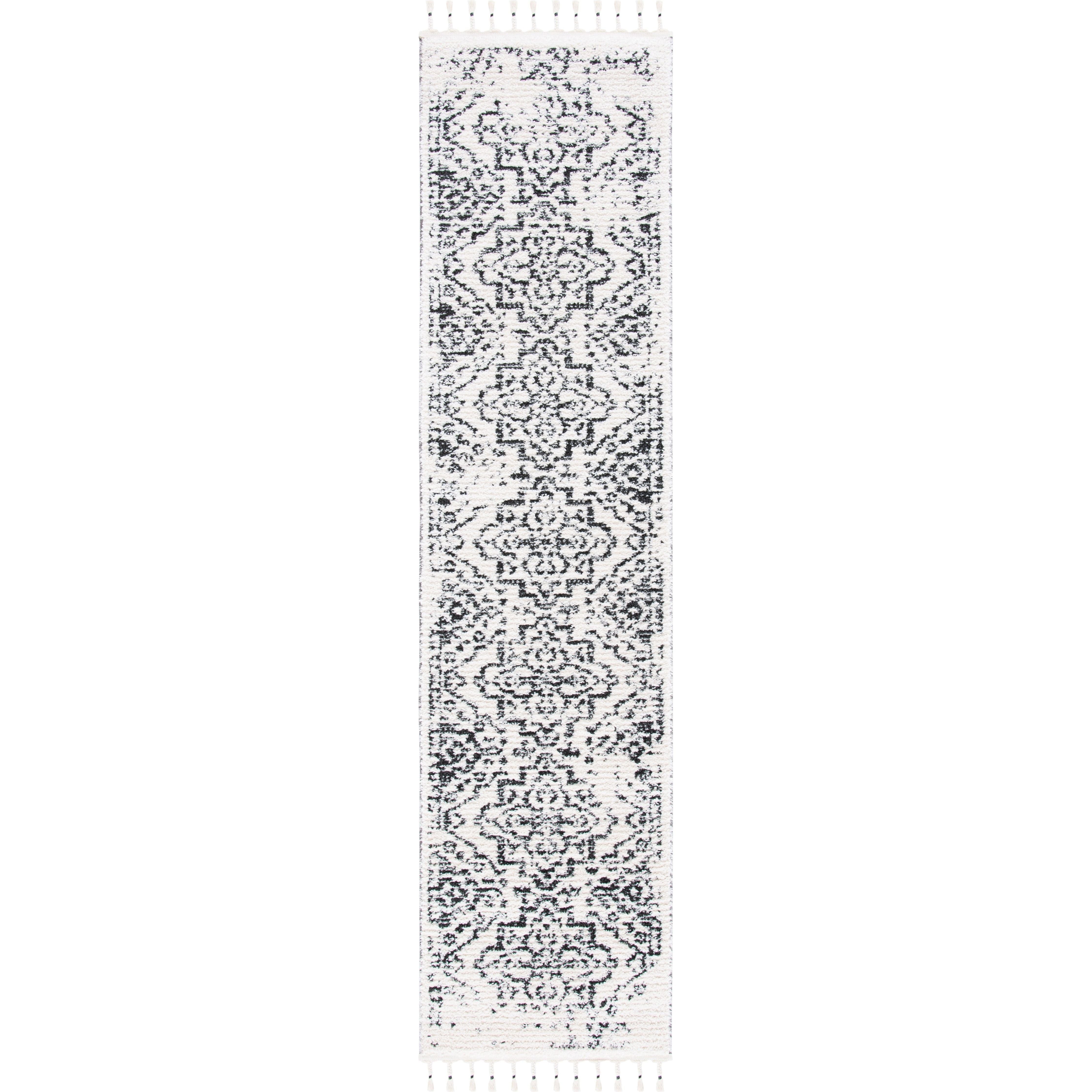 Moroccan Tassel Shag MTS413A, a luxurious addition to your home decor. Inspired by Old World charm, these thick shag rugs feature intricate diamond designs and lush textures from SAFAVIEH's Moroccan Tassel collection. Perfect for adding a rustic-chic touch to any room, these rugs are finished with braided fringe for a whimsical flair. Crafted with soft and durable synthetic yarns, these machine-woven shags will enhance your living space year after year, with an approximate thickness of 1.54 inches.