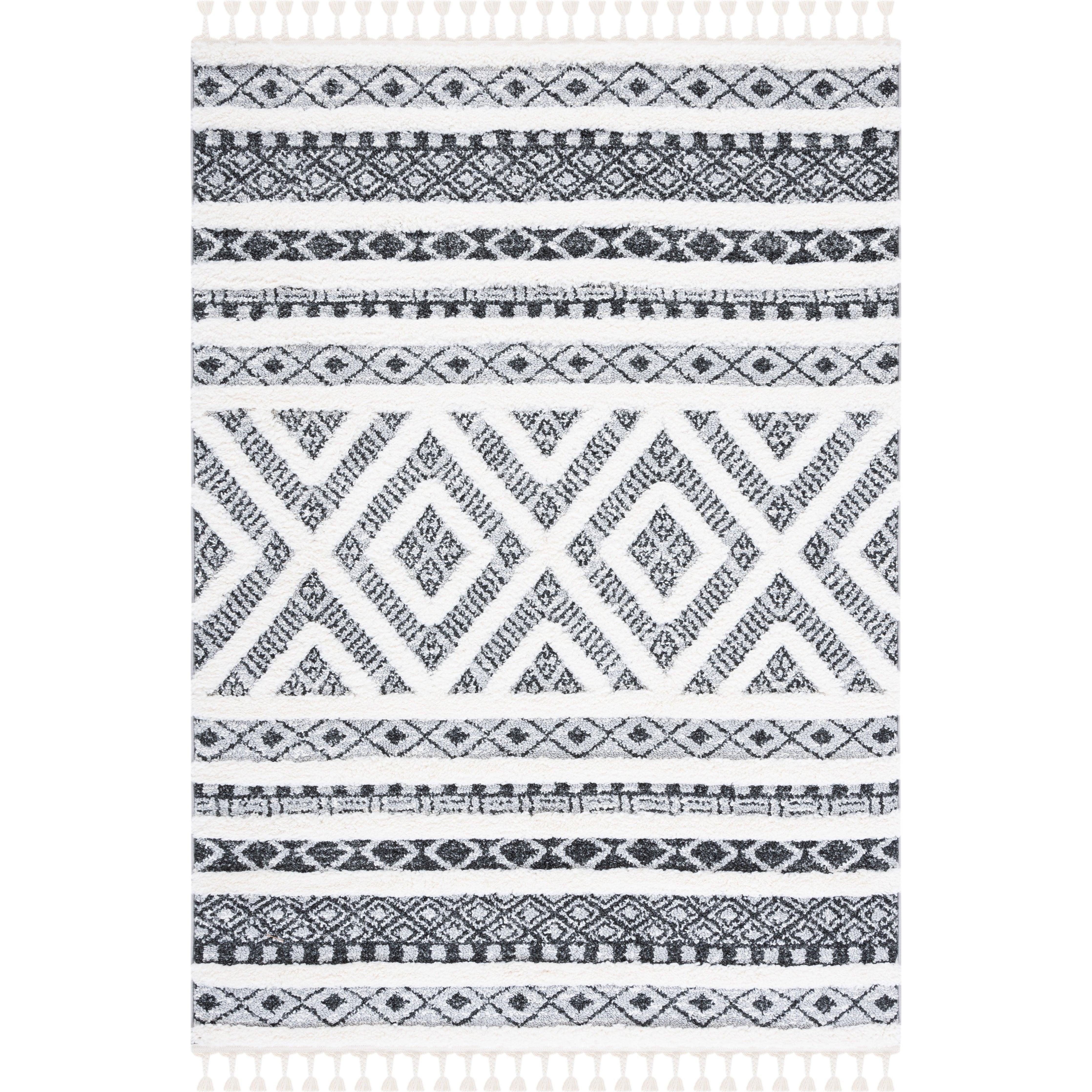 Moroccan Tassel Shag MTS628F rug, a perfect blend of Old World charm and modern rustic-chic style. The diamond designs and lush textures bring a touch of nomadic motifs to your home decor, creating a cozy and inviting atmosphere. Finished with braided fringe for a whimsical flair, these shag rugs are both stylish and durable, thanks to the use of soft and strong synthetic yarns in their machine-woven construction.