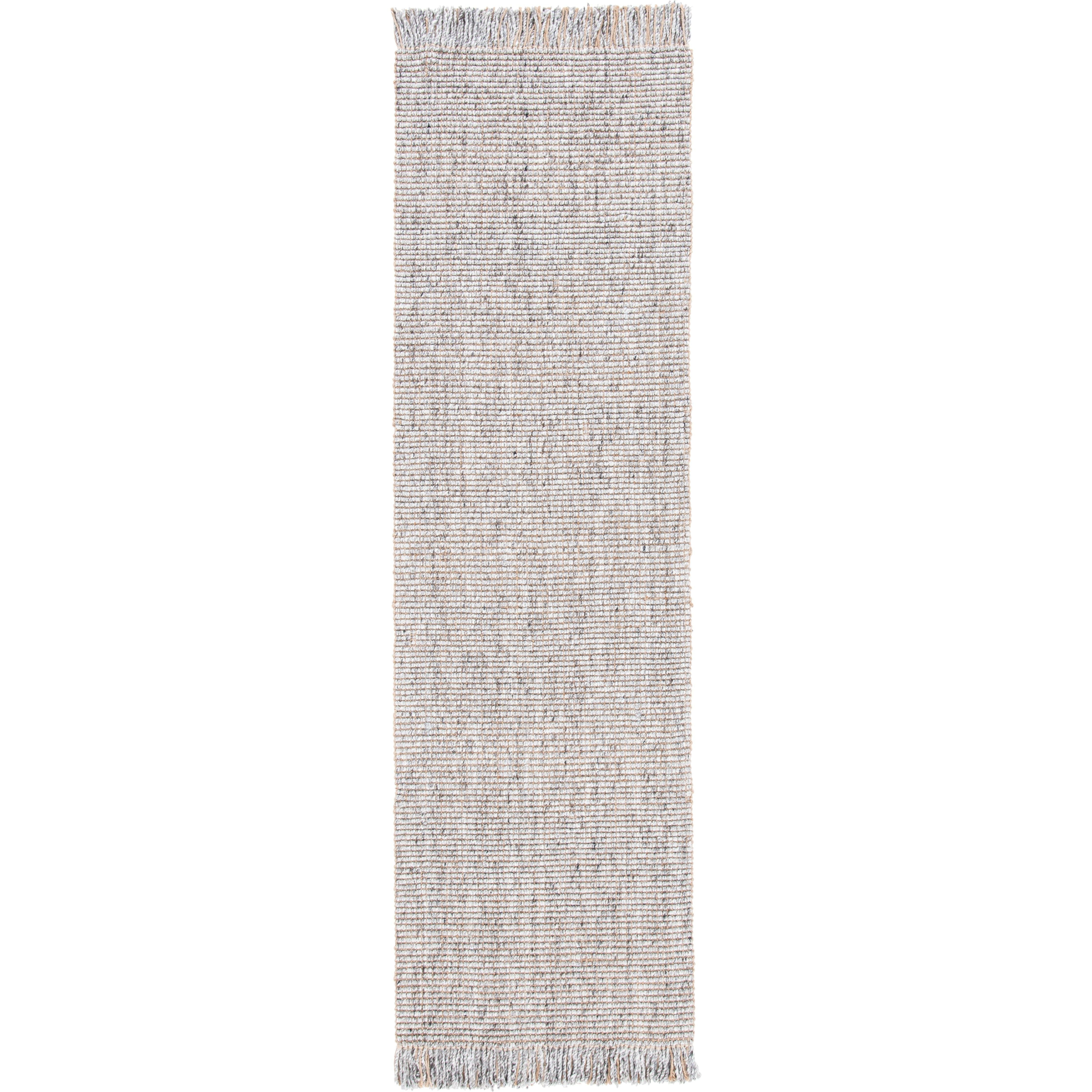 Natural Fiber NF826F rug, crafted from hand-woven jute fibers to create a beautifully textured boho aesthetic. The plush pile thickness offers a luxurious feel underfoot, making it ideal for various spaces such as under dining tables, coffee tables, or as a base for layering rugs. Complete with charming fringes, this rug adds the perfect finishing touch to farmhouse, cottage, bohemian, contemporary, or coastal home décor styles. With an approximate thickness of 1 inch, it brings warmth and character to any room.