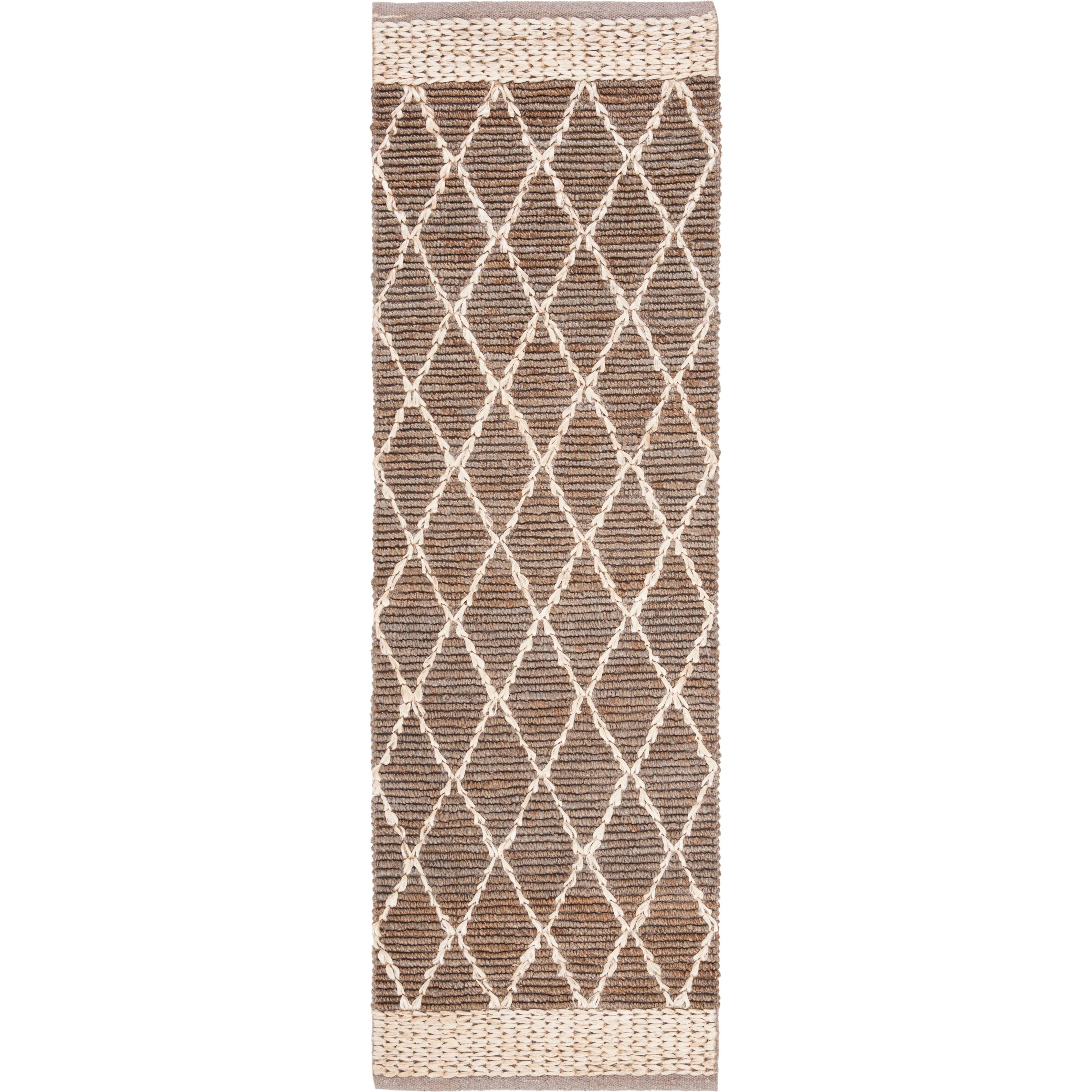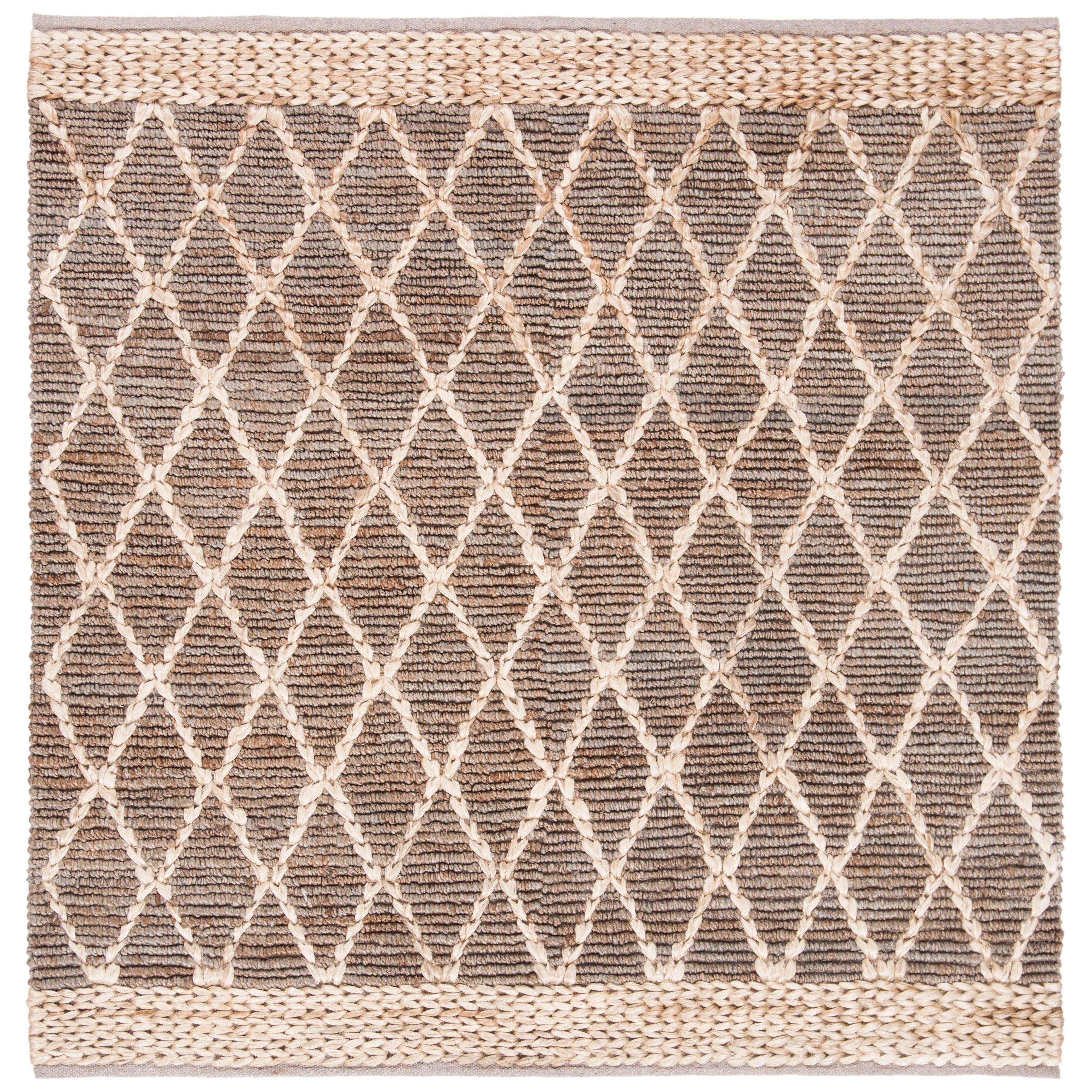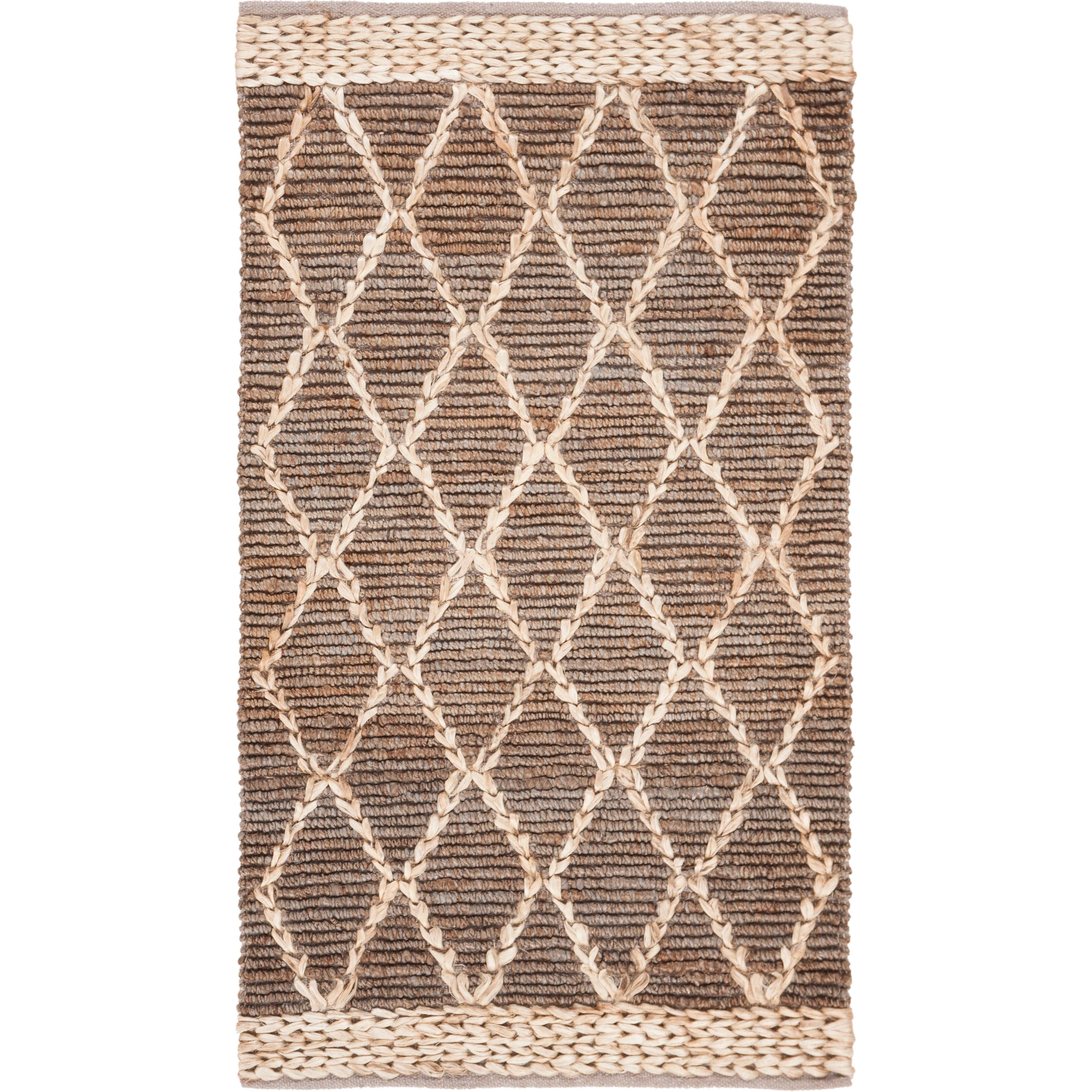 Natural Fiber NF951F rug, hand-woven with jute fibers to create a stunning boho-inspired texture. The natural brown hue and diamond trellis geometric pattern make it a versatile addition to farmhouse, cottage, bohemian, contemporary, casual, and coastal interior styles. This rug boasts a thickness of approximately 0.5 inches, adding both comfort and style to your space.