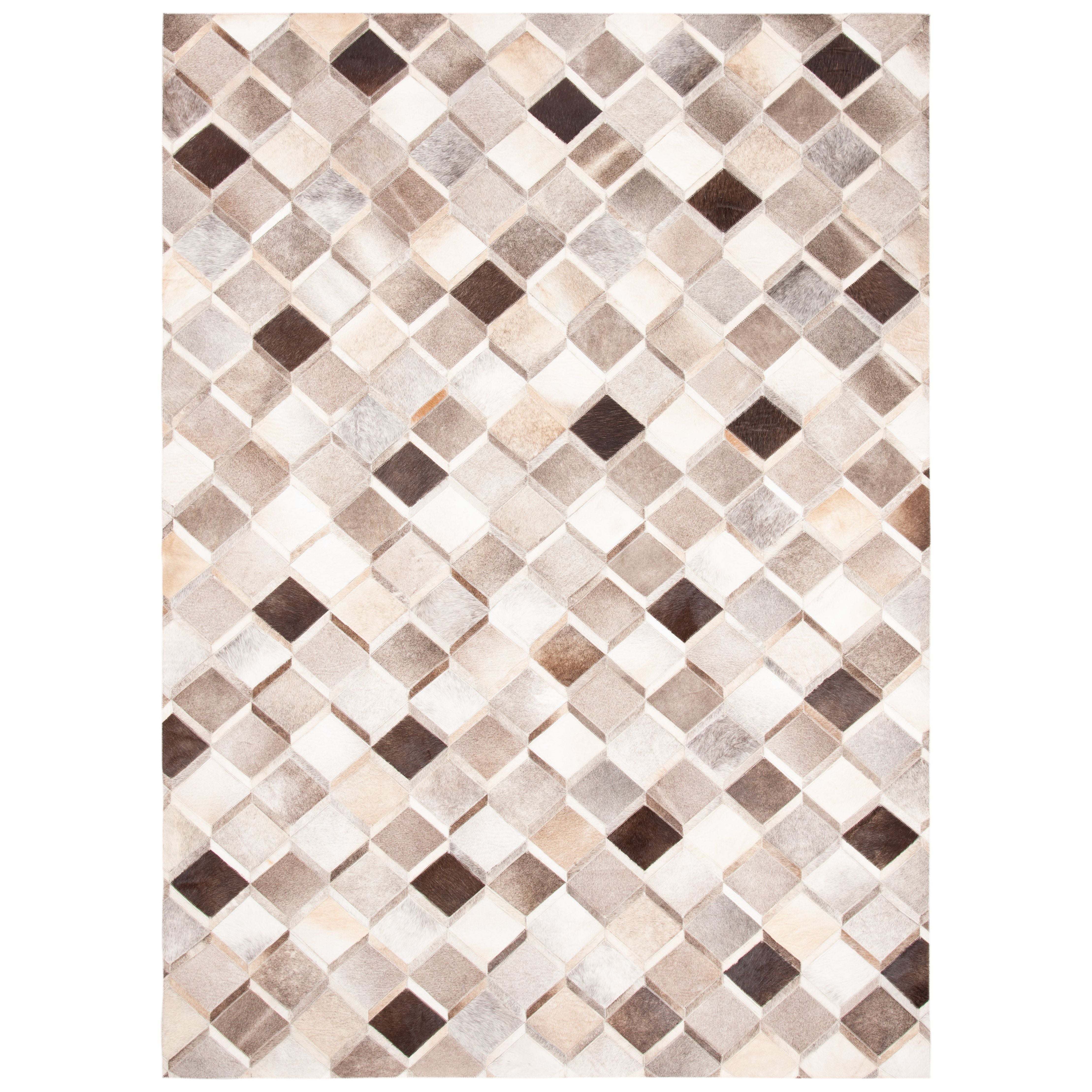 Studio Leather STL807A rug by SAFAVIEH, a stunning fusion of fashion and texture. Crafted with the finest cowhides and leather, these rugs boast a range of designs from classic patchwork squares to innovative geometric cutouts. Each rug is meticulously hand-stitched, resulting in contemporary masterpieces available in natural cowhide tones and vibrant primary colors. With an approximate thickness of 0.25 inches, this rug adds both style and comfort to any space.