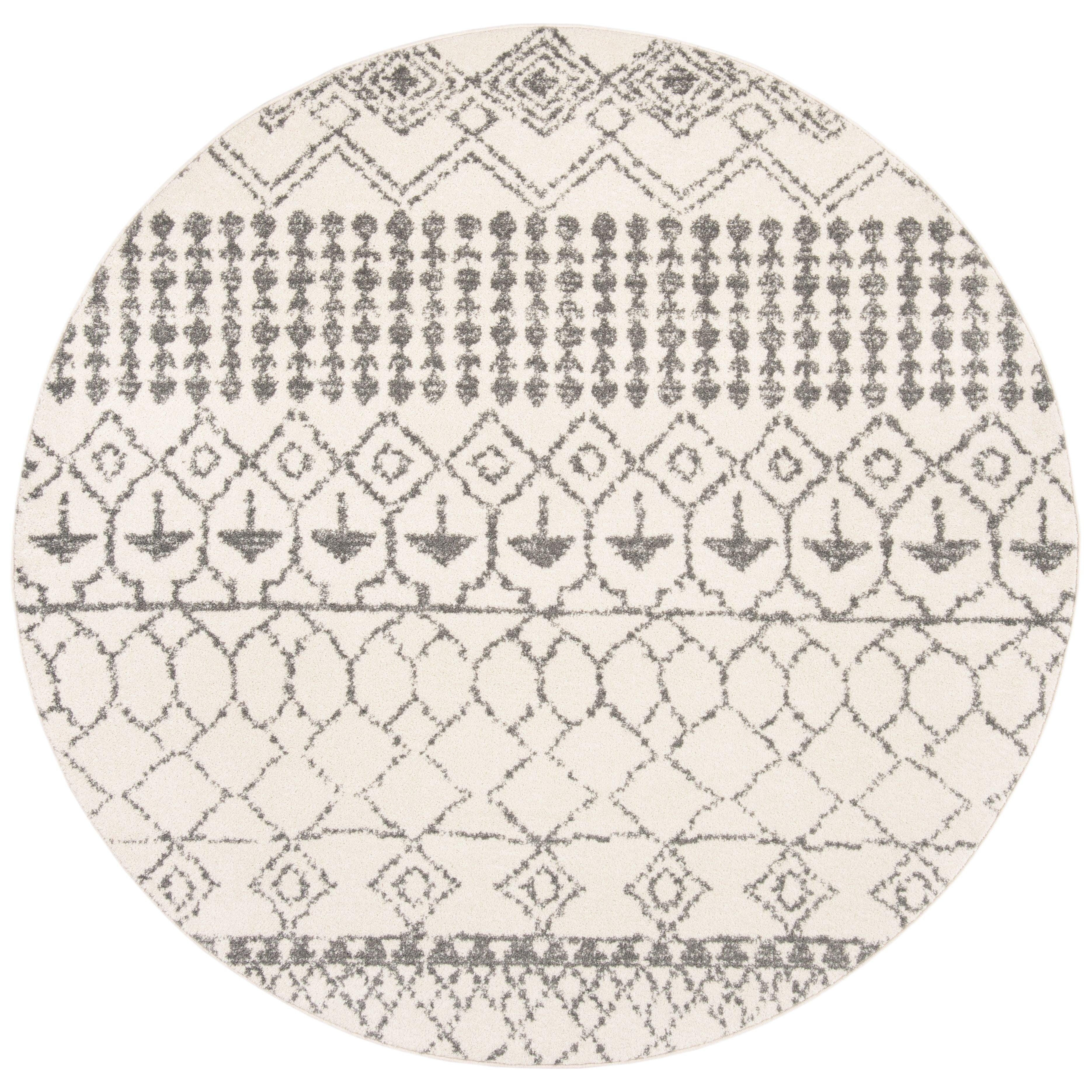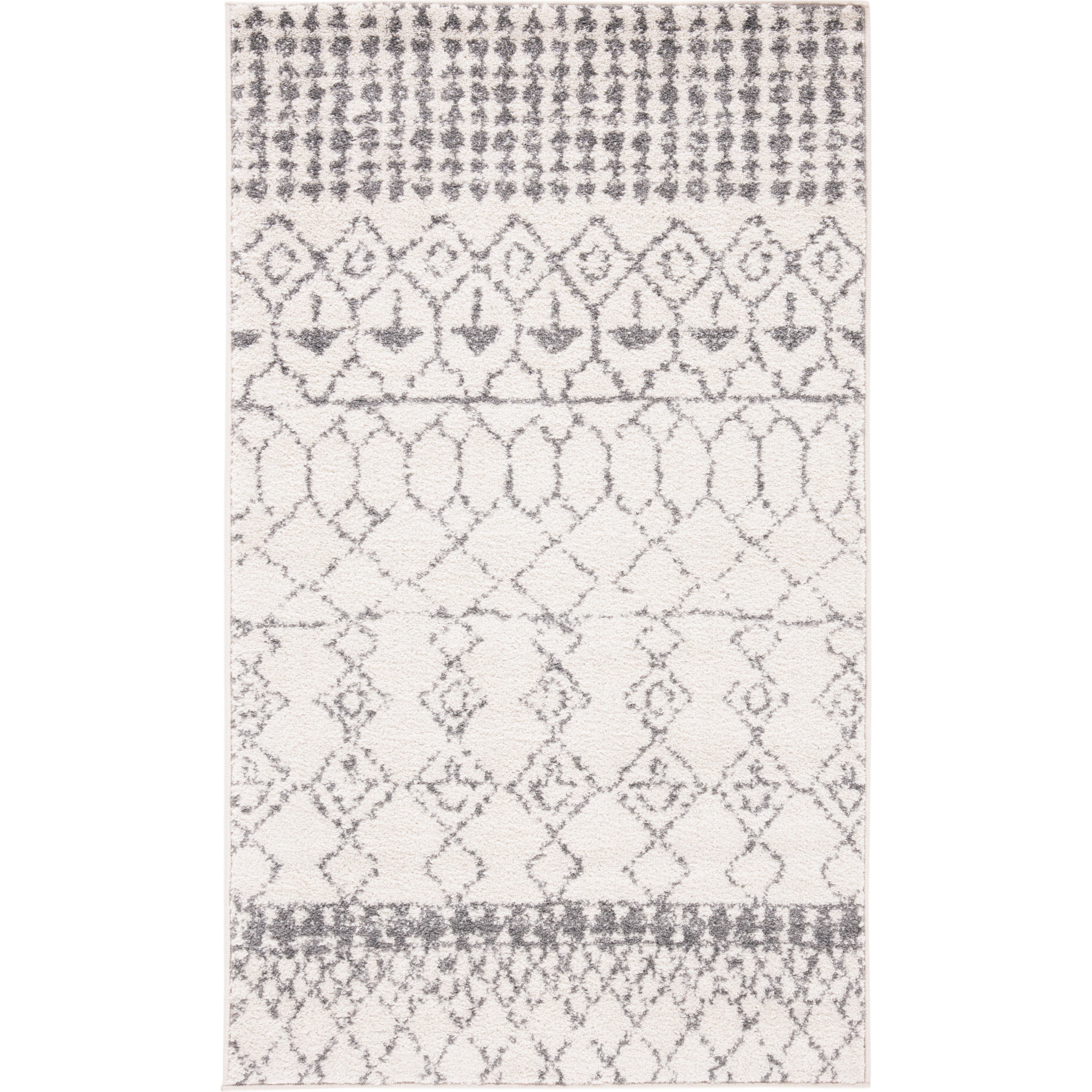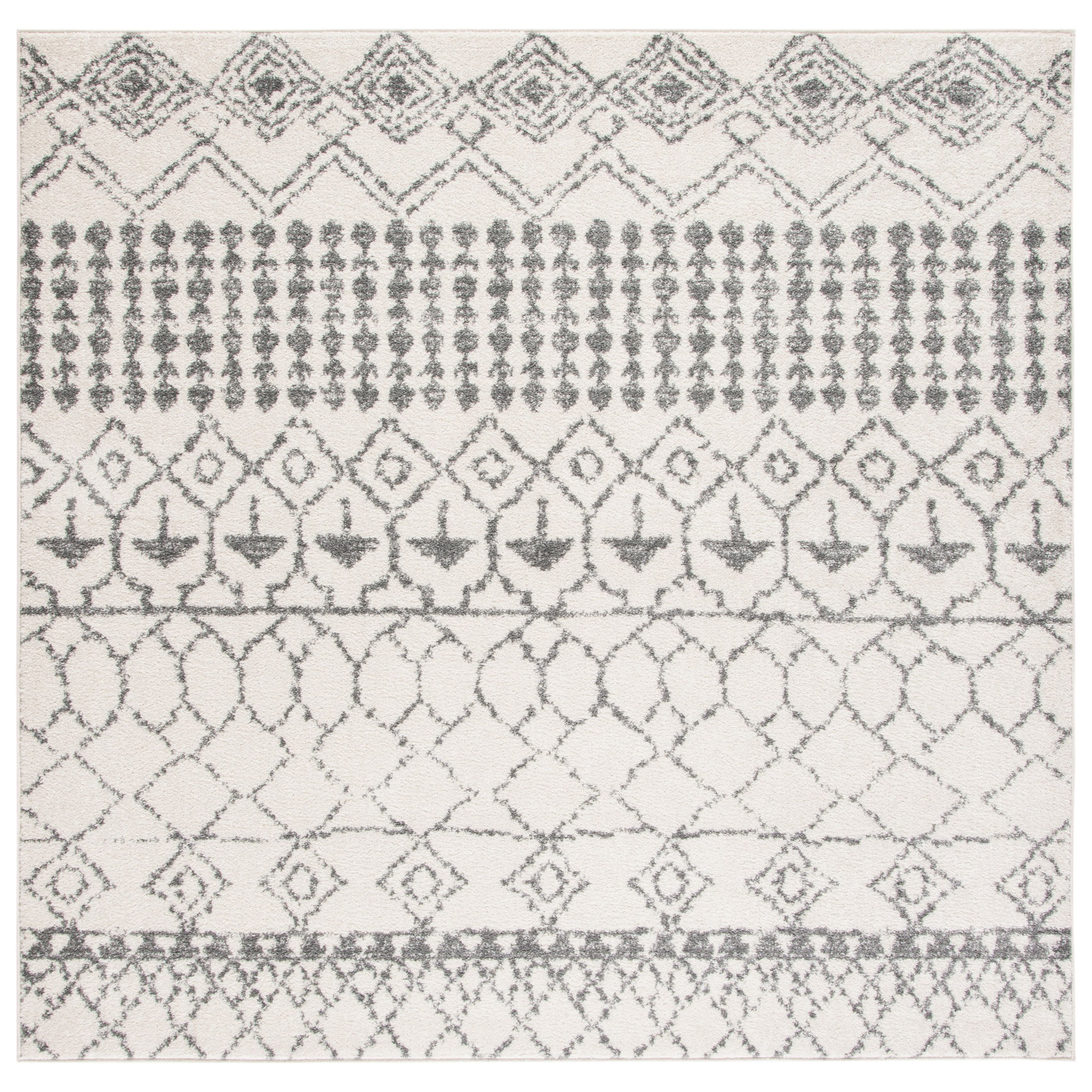 Tulum TUL229A area rug from the Tulum Collection by SAFAVIEH, featuring a blend of soft hues and rustic patterns for a refreshing and stylish addition to any room. These boho-chic rugs offer a modern twist on traditional craft art designs, creating a warm and inviting atmosphere in your space. Crafted with soft synthetic yarns, the Tulum rug provides both a distinctive look and a comforting feel underfoot with its approximate thickness of 0.4 inches.