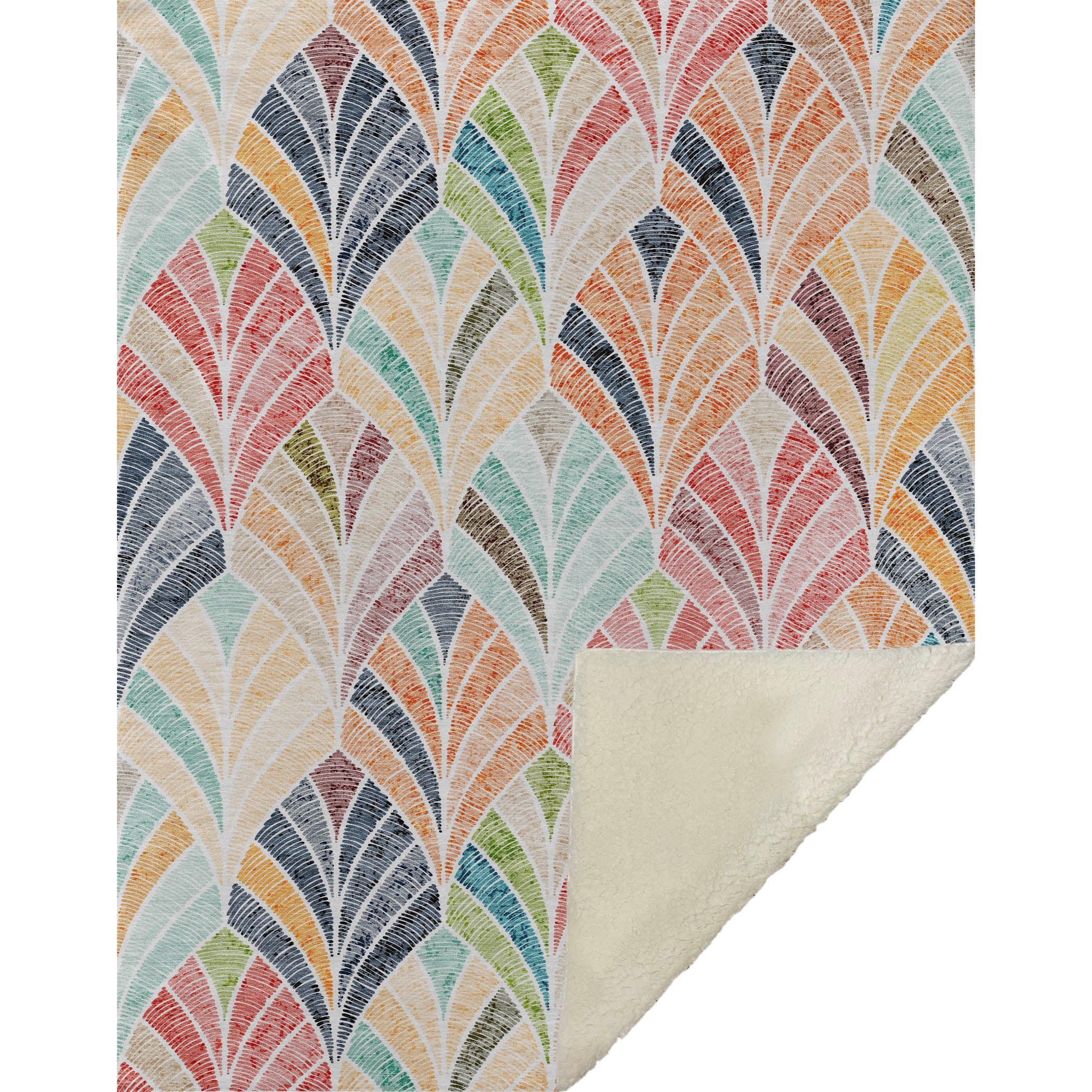 Immerse yourself in the allure of shield-like geometric patterns, where each section defined by lines creates a visual symphony in your space. The transitional style beautifully complements various decor themes, while the oversized 50" x 70" dimensions ensure ample coverage and comfort. Delight in the luxuriously soft-touch front with warm sherpa backing, crafted from fade-resistant polyester microfiber ideal for indoor and covered outdoor areas, with effortless maintenance thanks to its Premium Machine Washable design.