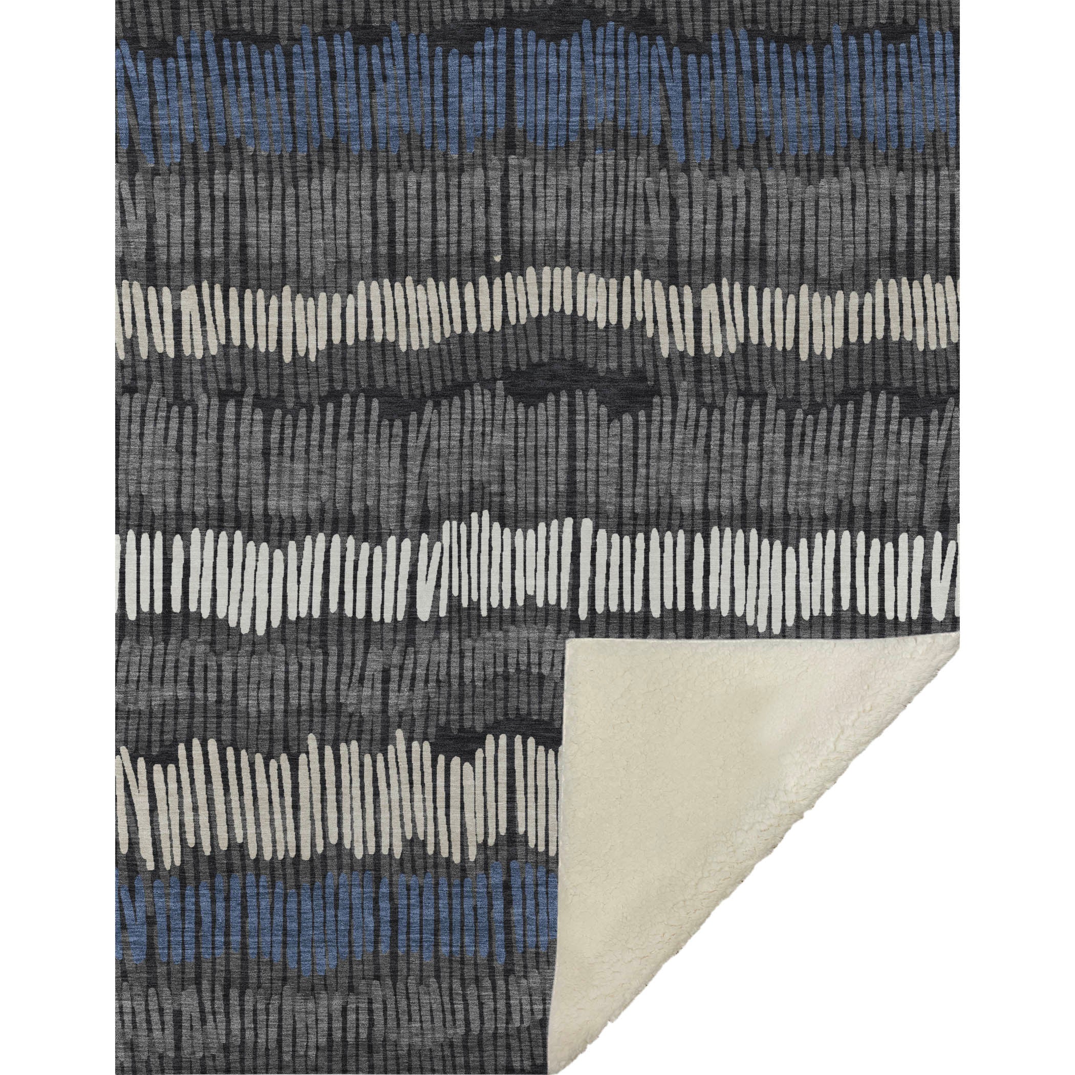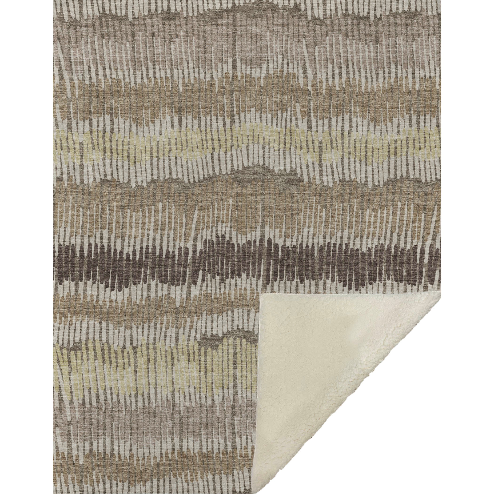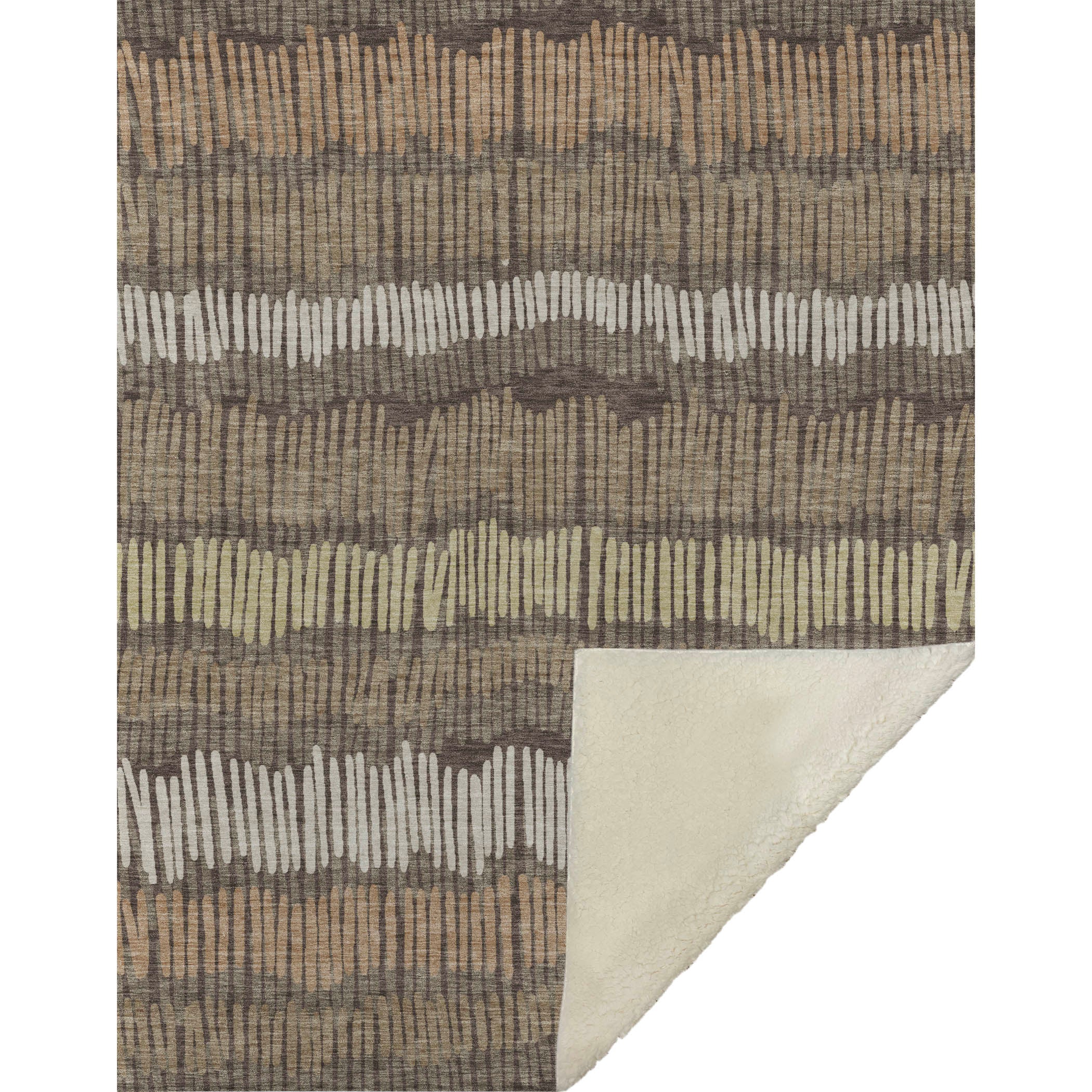 Capture the soothing vibe of minimalist design with the interplay of stripes and subtle wave-like stick motifs, making it a versatile centerpiece for any transitional space. Enjoy the oversized 50" x 70" dimensions, bringing ample coziness with its luxuriously soft-touch front and warm sherpa backing. Constructed with fade-resistant polyester microfiber, perfect for indoor and covered outdoor settings, its Premium Machine Washable nature ensures maintenance is a breeze.