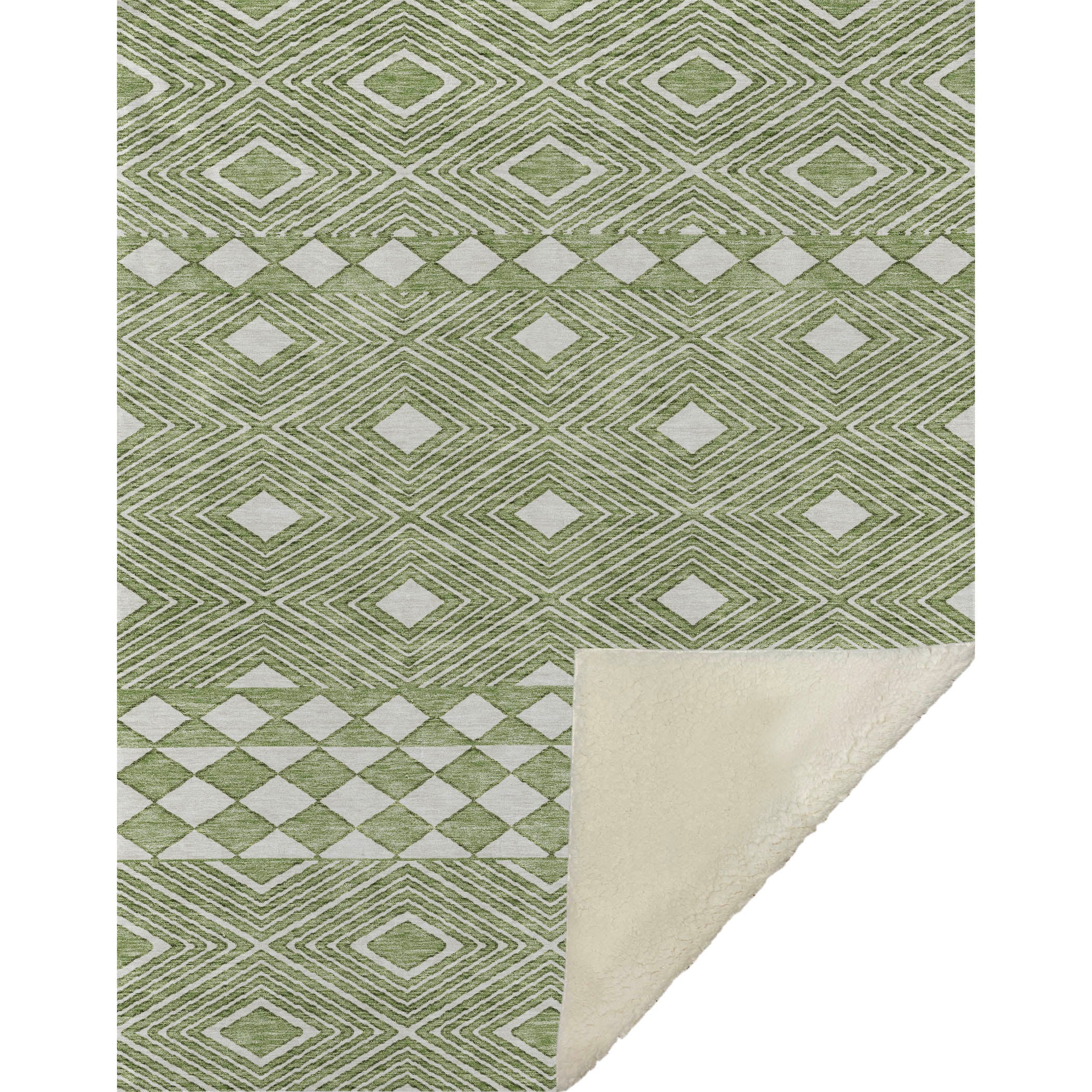 Experience the perfect blend of transitional style and modern flair with a horizontal diamond pattern that captivates while seamlessly complementing your home decor. Oversized at 50" x 70", its luxuriously soft-touch front with a warm sherpa backing ensures unrivaled comfort. Crafted from fade-resistant polyester microfiber, it's ideal for indoor and covered outdoor use, with the added benefit of easy maintenance thanks to its Premium Machine Washable design.
