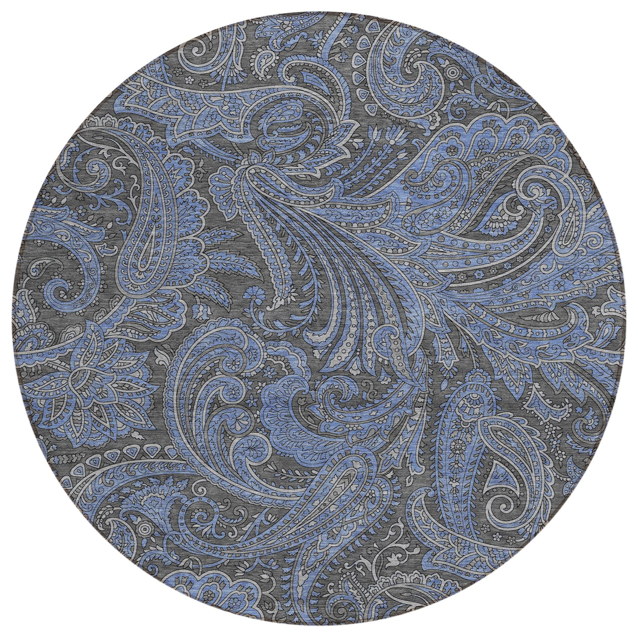 Chantille ACN654 Charcoal area rug, a captivating piece that will elevate the ambiance of any space. Featuring tear-dropped motifs intricately intertwined with timeless paisley patterns, this rug exudes enchantment and charm. Versatile in design, it is perfect for both indoor and outdoor use, thanks to its UV stabilized construction.