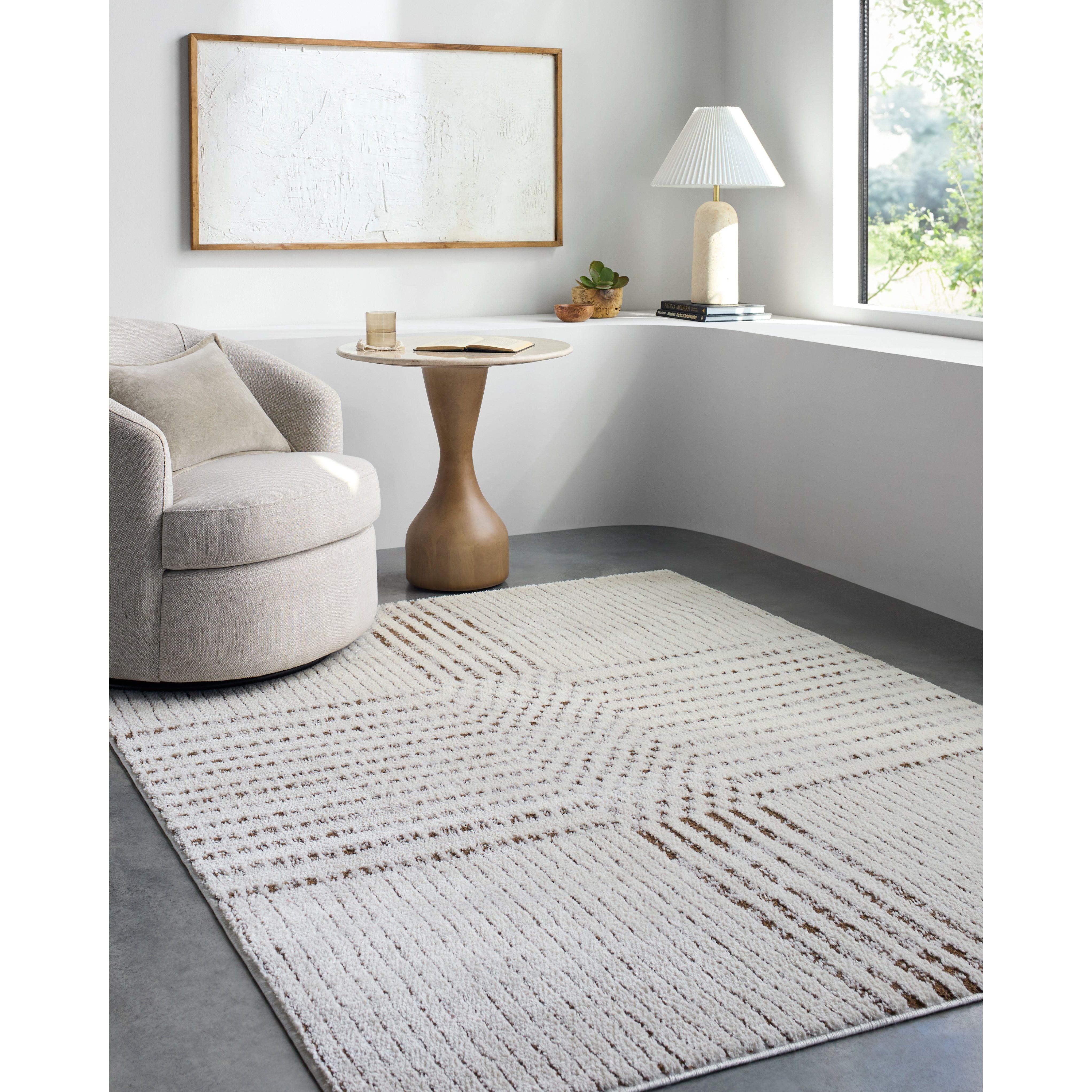 Transform your living space with the Architect area rug, a stunning example of minimalist modern design. Crafted in Turkey from durable polyester, this high-pile, machine-woven masterpiece is as comfortable underfoot as it is eye-catching. Whether placed in a bustling living room or a serene bedroom sanctuary, the Architect rug delivers both sophistication and plush comfort. To keep it looking pristine, simply spot clean with mild detergent as needed. Pair it with a rug pad for added cushioning and to keep it securely in place. Elevate your home decor effortlessly with this chic and versatile addition.
