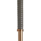 This contemporary floor lamp possesses a modern sensibility defined by a sleek style and masterly materials. A heritage brass steel frame wrapped in gray leather seamlessly blends into a circular black marble base—a beautiful balance between natural and refined elements. The taupe cloth cord features a dimmable switch to create an ambiance that suits you. A bronze iron drum shade tops this modish luminescent. Marble will vary.