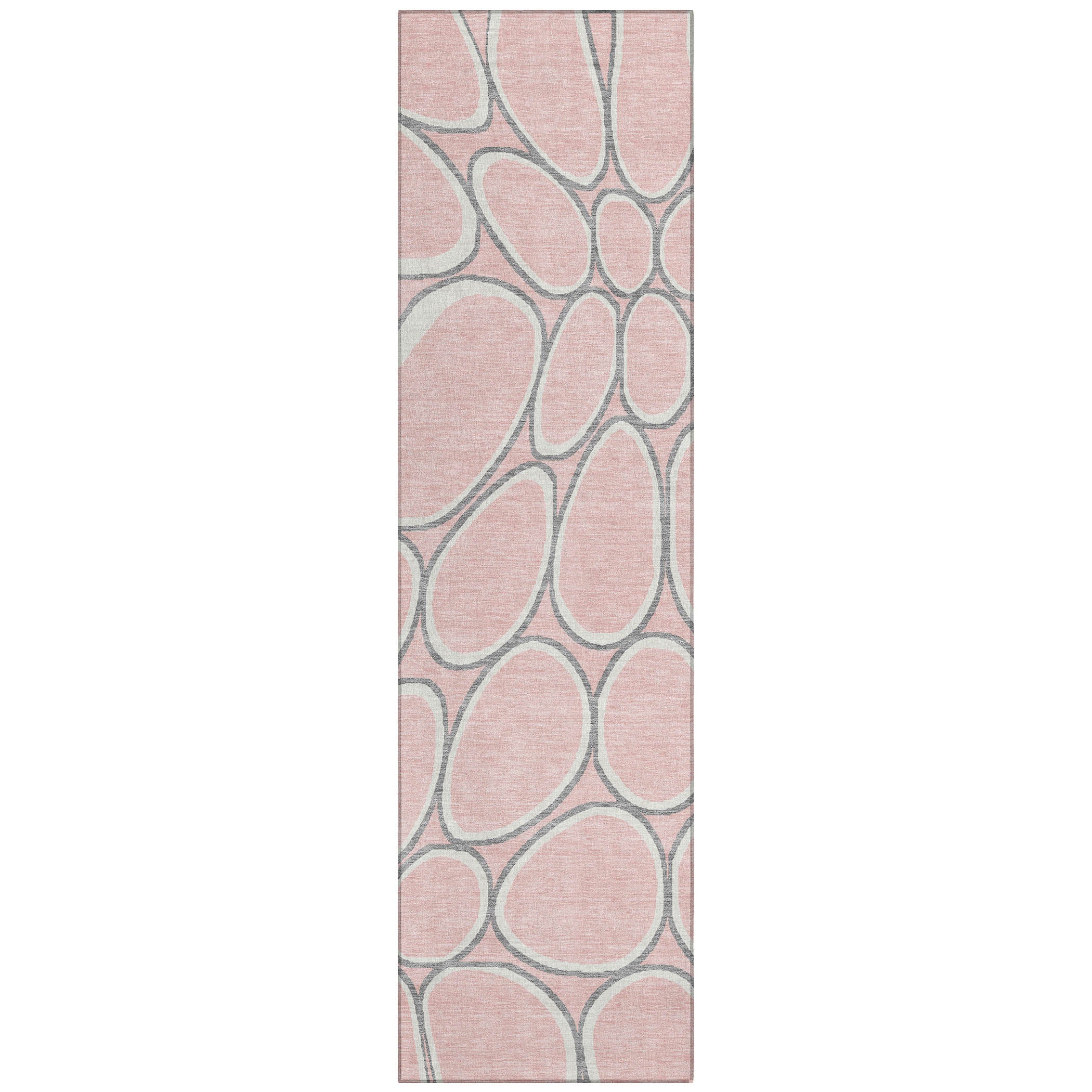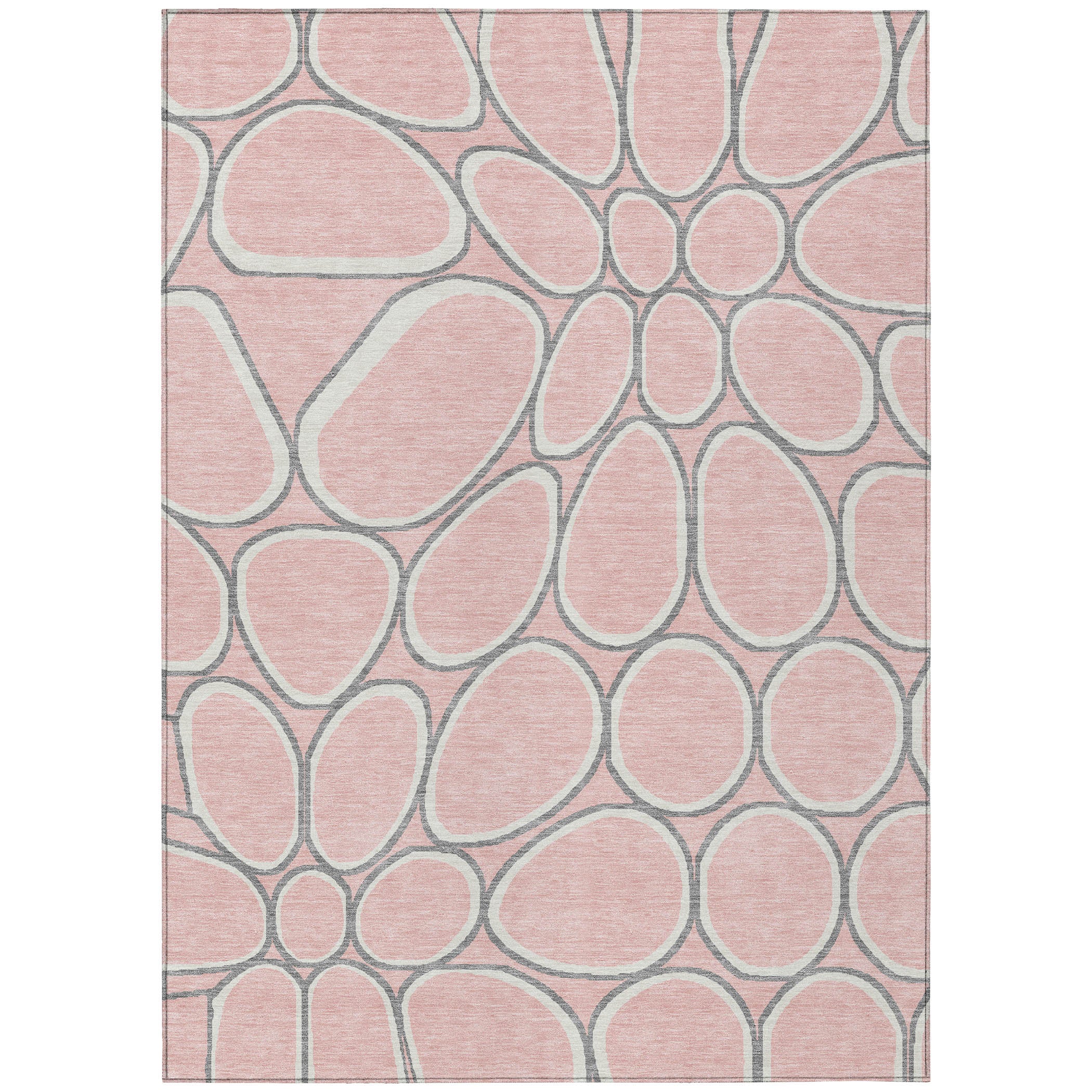 Discover the beauty of our area rug, where stone-shaped circles create an intricate path pattern, offering a stunning transitional and circular motif. This rug not only enhances your decor but is also practical, being UV stabilized for both indoor and outdoor use, ultra-thin for easy fitting, machine-washable for hassle-free maintenance, and designed to be both family and pet friendly.
