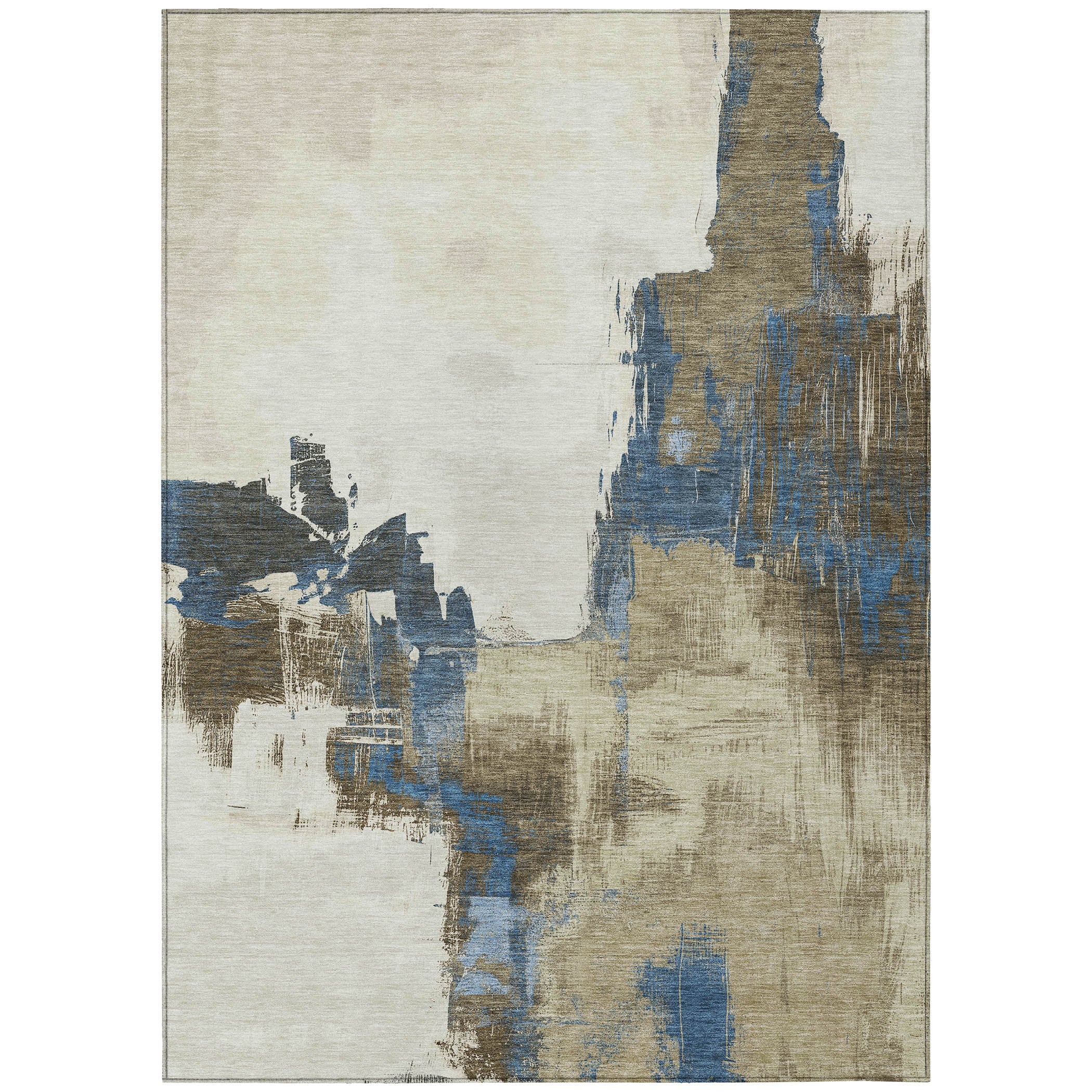 Transform your space with the dynamic design of color-blocking strokes in this transitional rug. The abstract pattern brings a fresh and modern feel to your decor. UV stabilized for versatile use, it boasts an ultra-thin construction. This machine-washable rug is perfect for family and pet-friendly homes, providing both style and practicality.