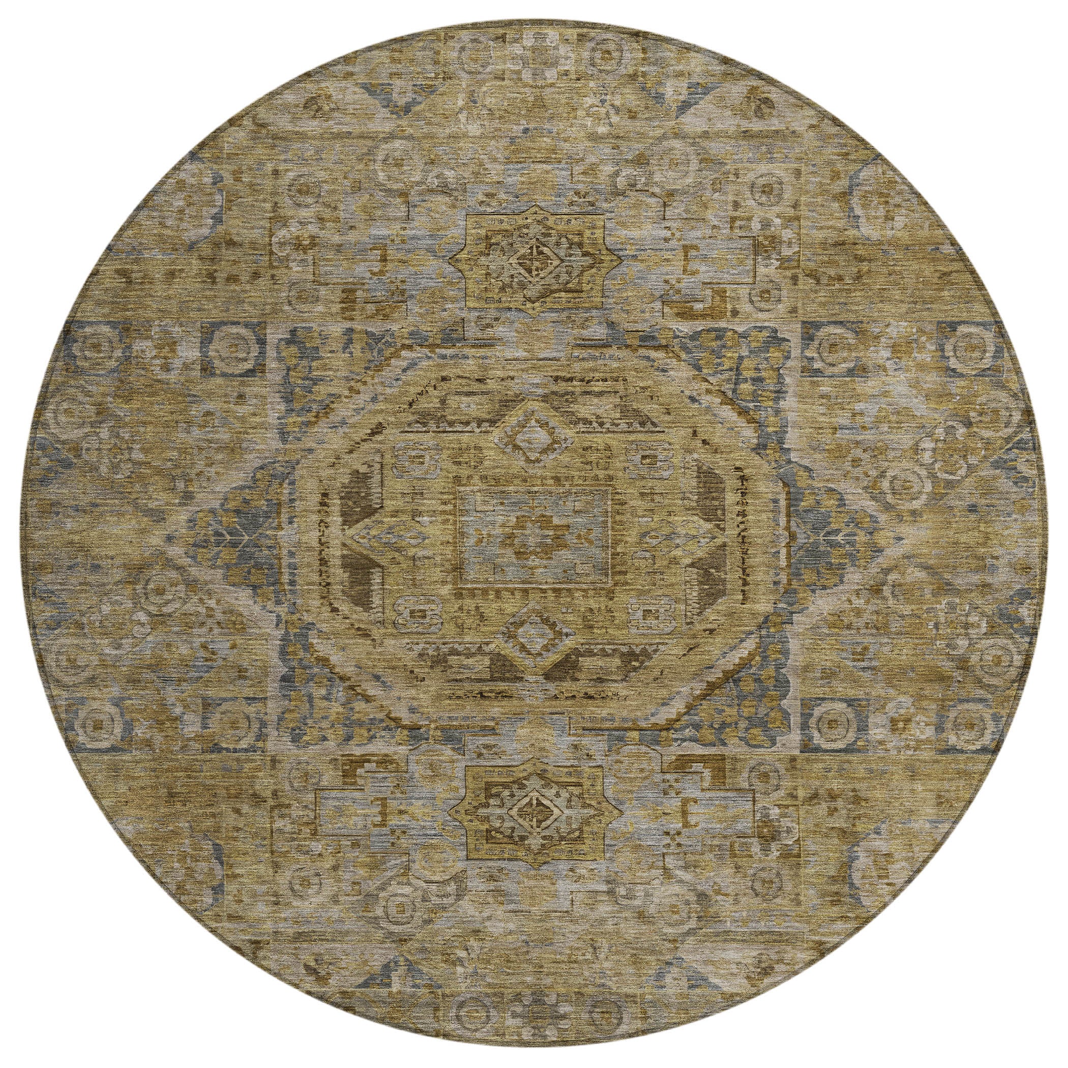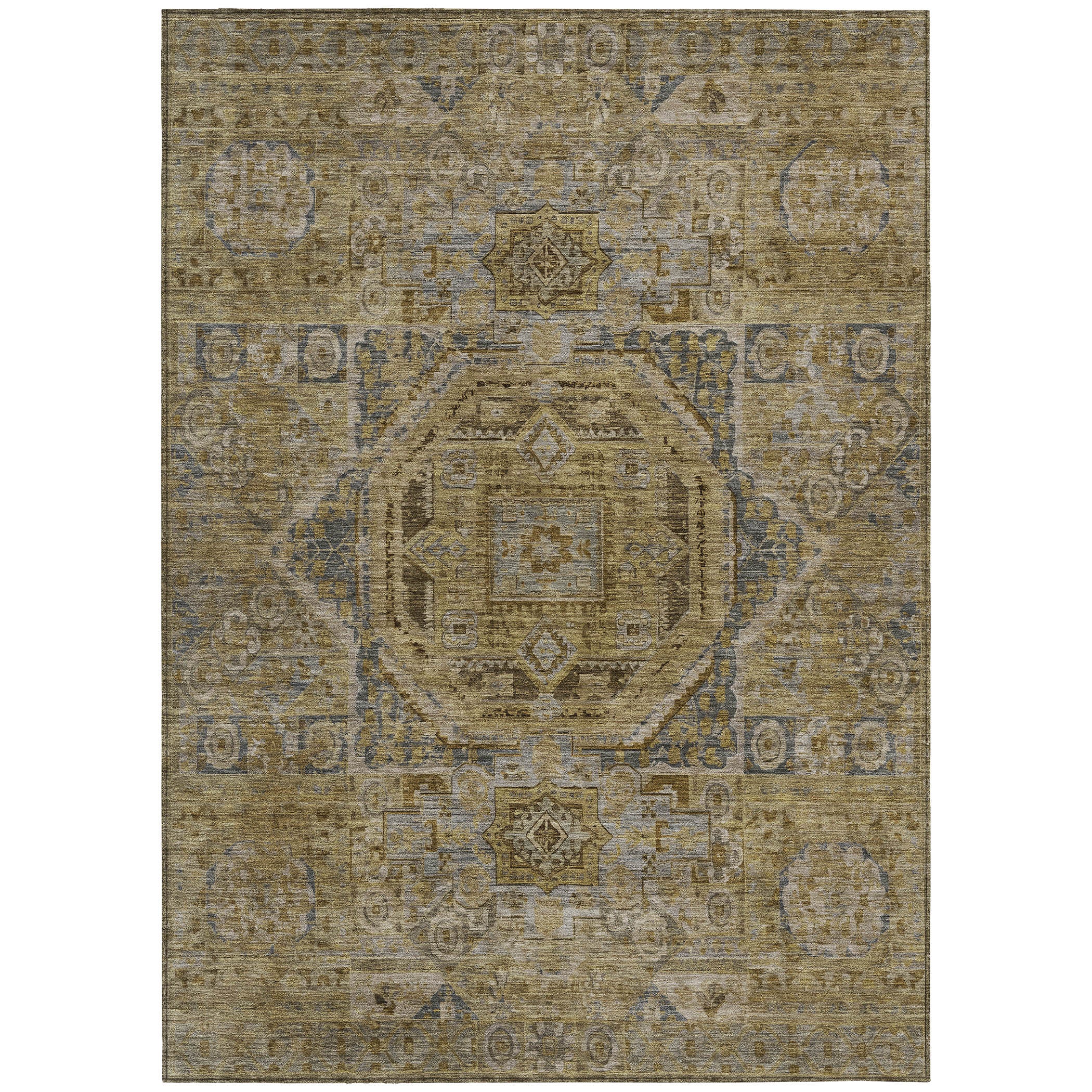 Showcasing a grand center medallion surrounded by meticulously detailed motifs, this rug draws from global patterns to create a rich, textured design. The intricate detailing of the motifs complements the boldness of the medallion, adding a refined touch. Its traditional style and global pattern offer an elegant fusion of classic and international elements. Designed for both indoor and outdoor spaces, this UV-stabilized rug features an ultra-thin construction that’s easy to clean and care for. Its machine-washable design adds convenience, while its family and pet-friendly nature ensures it can handle everyday wear and tear. Stylish and durable, it’s the perfect solution for busy households.