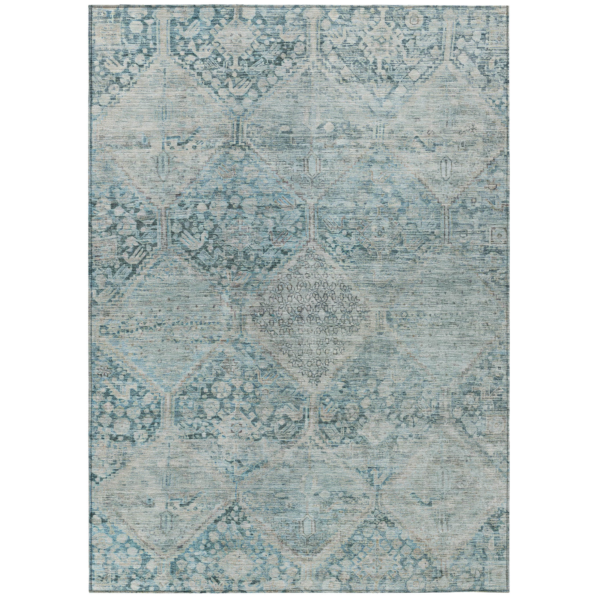 Showcasing large-scaled diamond motifs adorned with intricate details, this rug offers a striking geometric pattern that’s both eye-catching and refined. The transitional style allows it to effortlessly blend contemporary boldness with classic design elements, making it a perfect fit for a variety of interiors. Designed for both indoor and outdoor spaces, this UV-stabilized rug features an ultra-thin construction that’s easy to clean and care for. Its machine-washable design adds convenience, while its family and pet-friendly nature ensures it can handle everyday wear and tear. Stylish and durable, it’s the perfect solution for busy households.