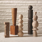 Inspired by sculpture, ancient totems, and Brancusi's atelier, the pillar collection is the perfect way to create a visual landscape. They can be layered together or used as single objects. These totems are a sculptural addition to any interior.