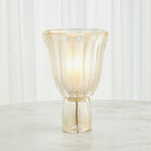 Italian artisans sculpt the Astoria Lighted Hurricane by hand forming each edge of the cased glass using pinchers to create the unique silhouettes.