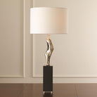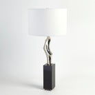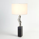 This thought provoking lamp is done in cast brass with a polished nickel finish and sits upon a solid black marble base.