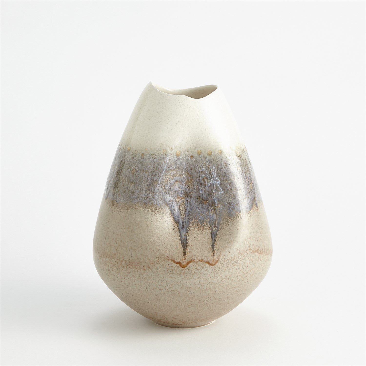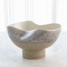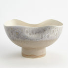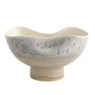 Made of Portuguese slip cast ceramic, the Cream Rises Dented Vase and bowl has a concaved design with ivory and grey reactive glaze finishes.