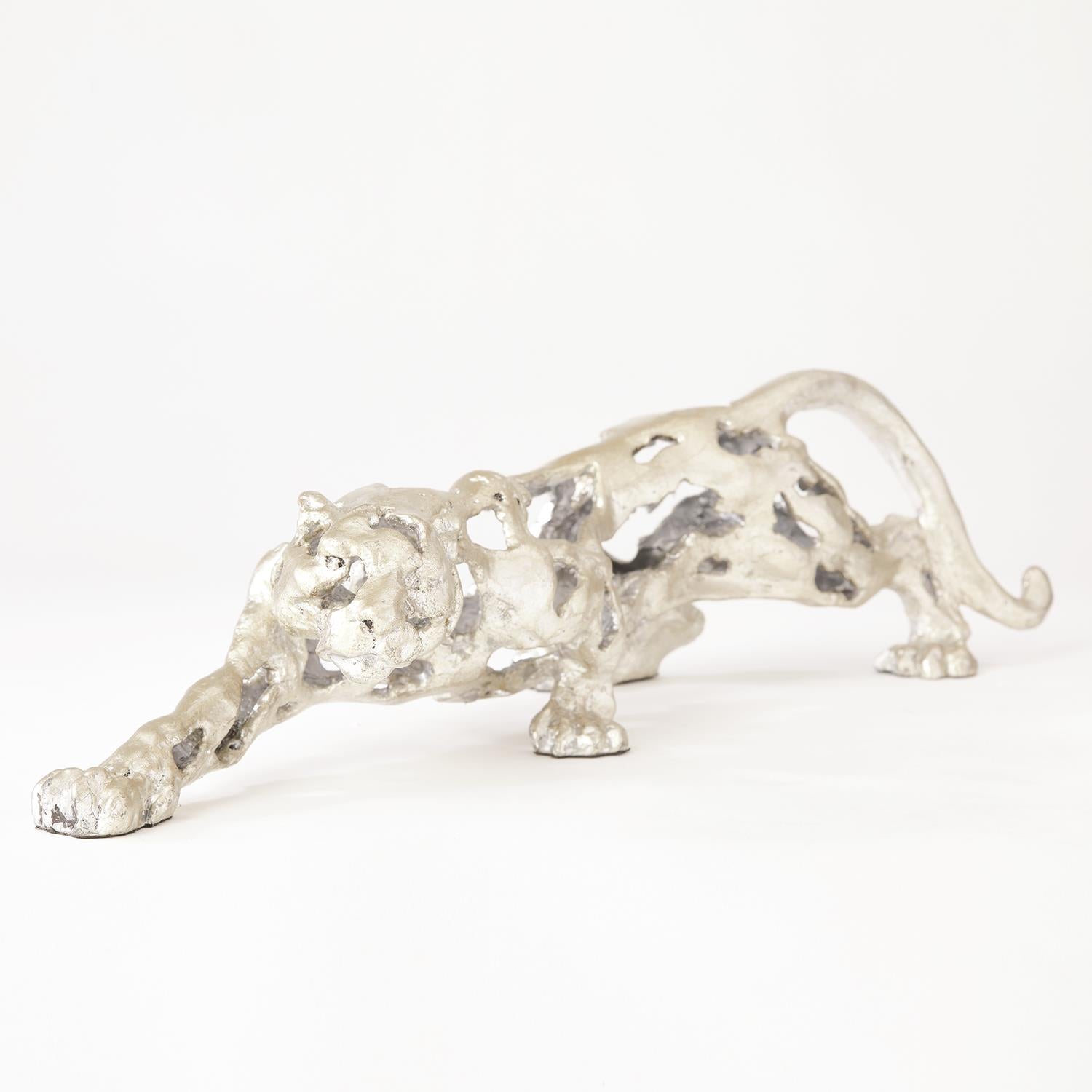 Our regal Jaguar brings a sense of noble calm anywhere you place him. Made of solid cast brass with a silver leaf finish, you cannot deny this feline's magnificence!