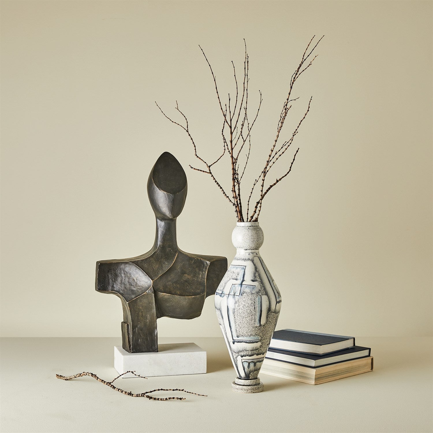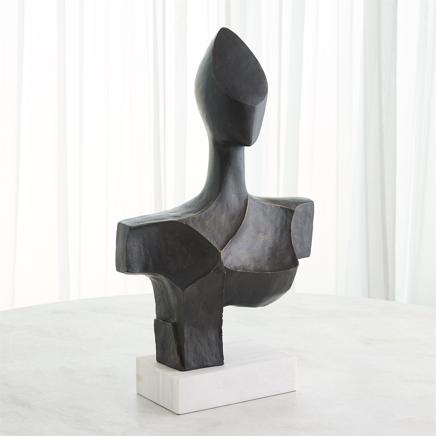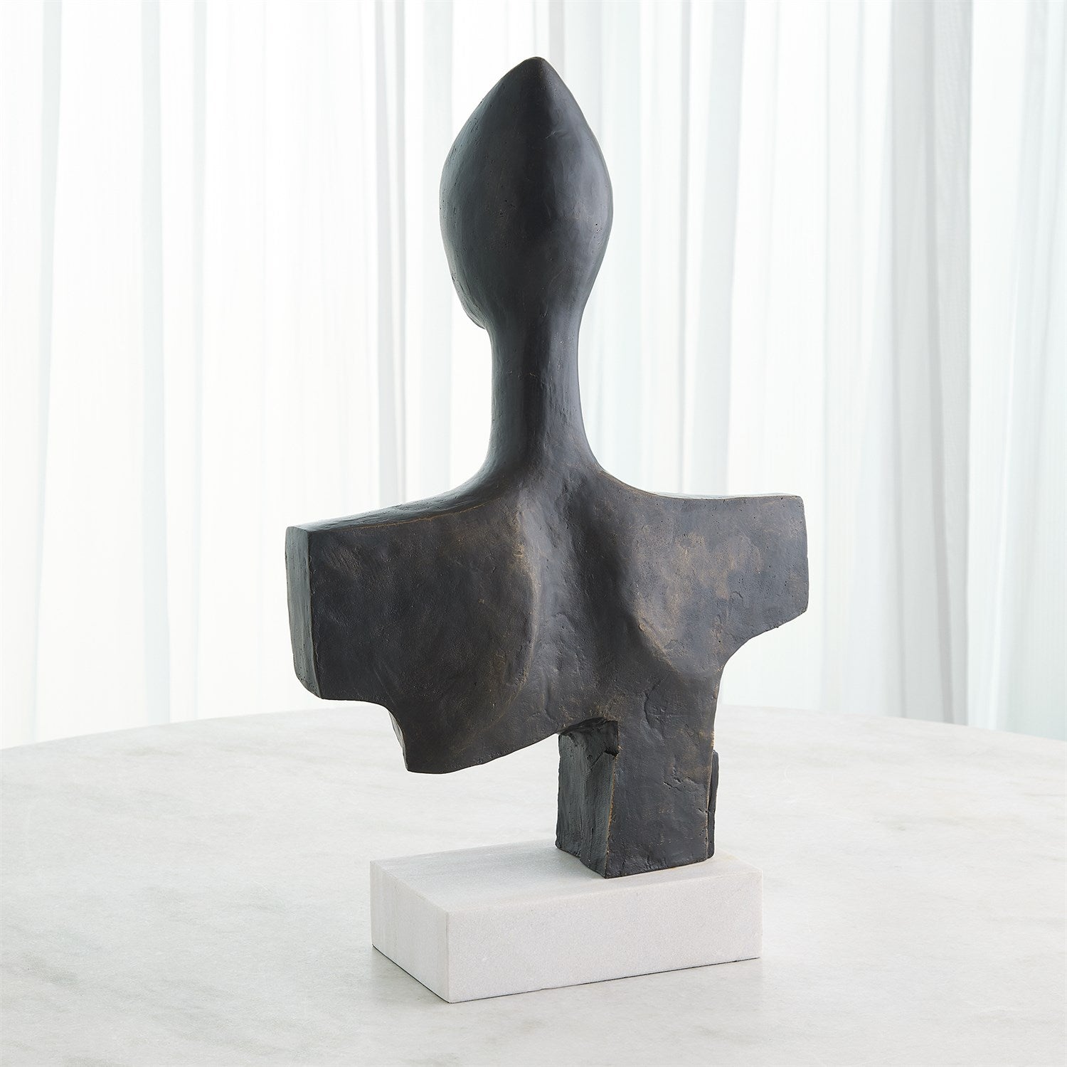The Expressionist Beauty sculpture is a stunning statement piece handcrafted from cast iron with a rich bronze finish beautifully supported by a white marble base. This captivating work of art adds a touch of sophistication and artistic flair to any space.