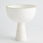 The Footed Alabaster Bowl is made of alternating blocks of Italian alabaster with gold leaf painted detail. As alabaster is a natural product, please be aware that there will always be variations in veining and color.