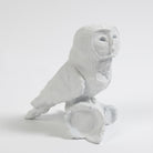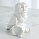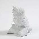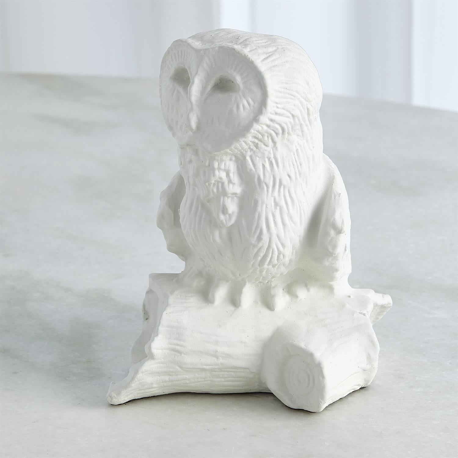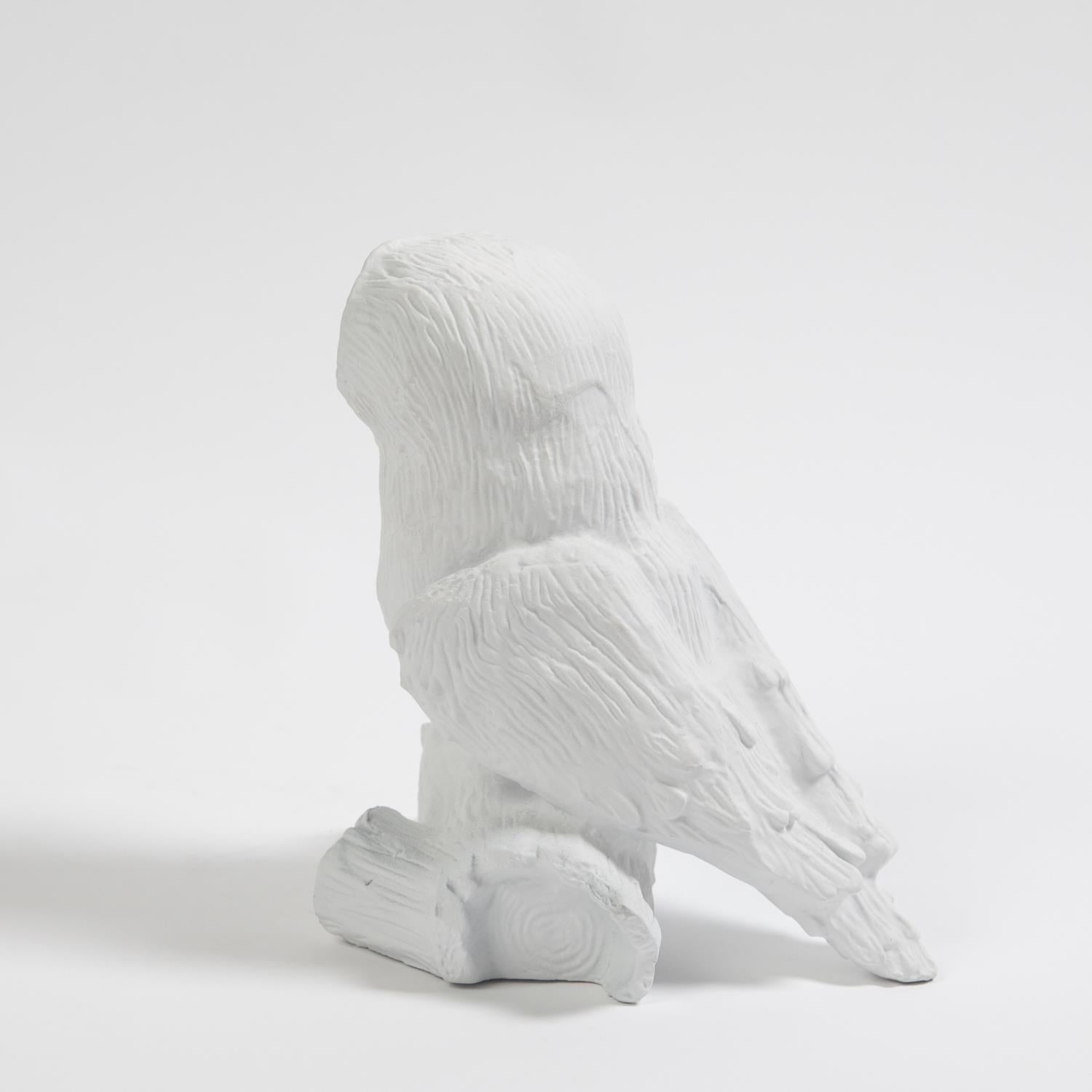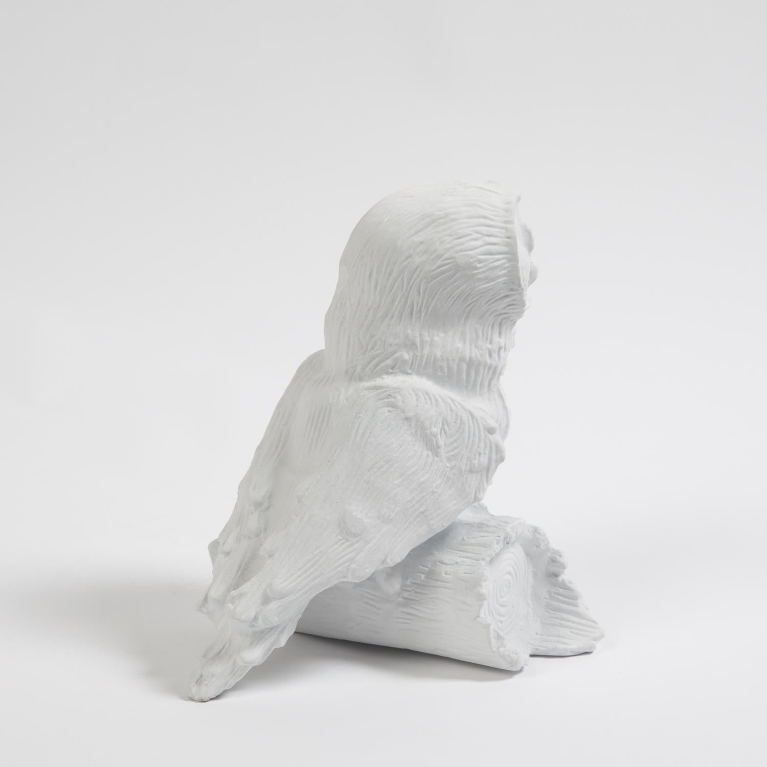 The Arete Collection is renowned for magnificently carved and hand-crafted home furnishings. This exclusive collection for William D Scott consists of nature-inspired accessories. This cast aluminum sculpture is covered in a matte white finish and resembles an owl resting on a piece of a tree branch. Felt tabs on the bottom of the sculpture help to protect any surface this piece rests upon.