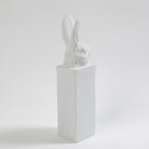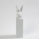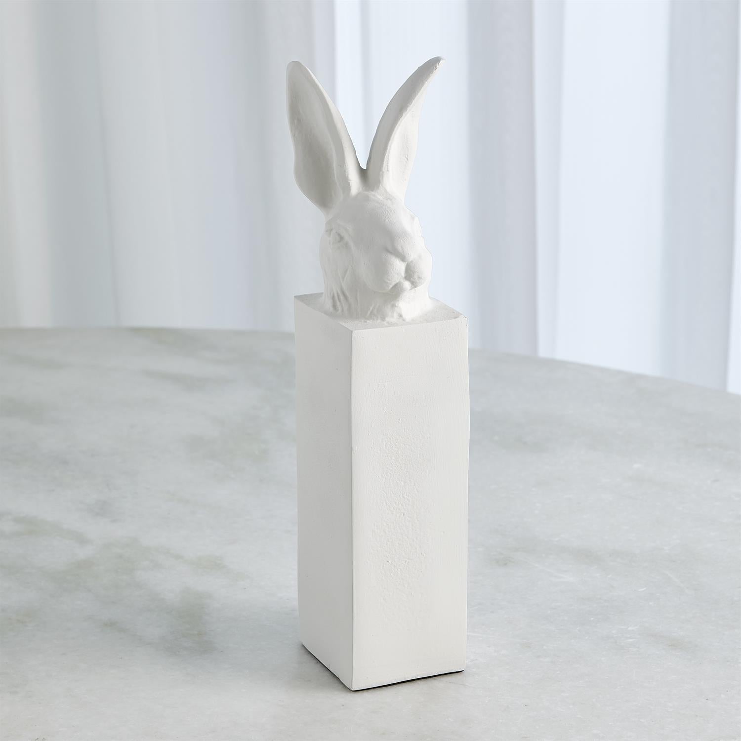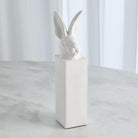 The Arete Collection is renowned for magnificently carved and hand-crafted home furnishings. This exclusive collection for William D Scott consists of nature-inspired accessories. This cast aluminum sculpture is covered in a matte white finish and resembles the head of a rabbit resting upon a rectangular base. Felt tabs on the bottom of the sculpture help to protect any surface this piece rests upon.