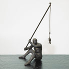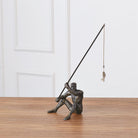 This fisherman is cast iron with a bronze finish. He sits comfortably on a shelf or table.