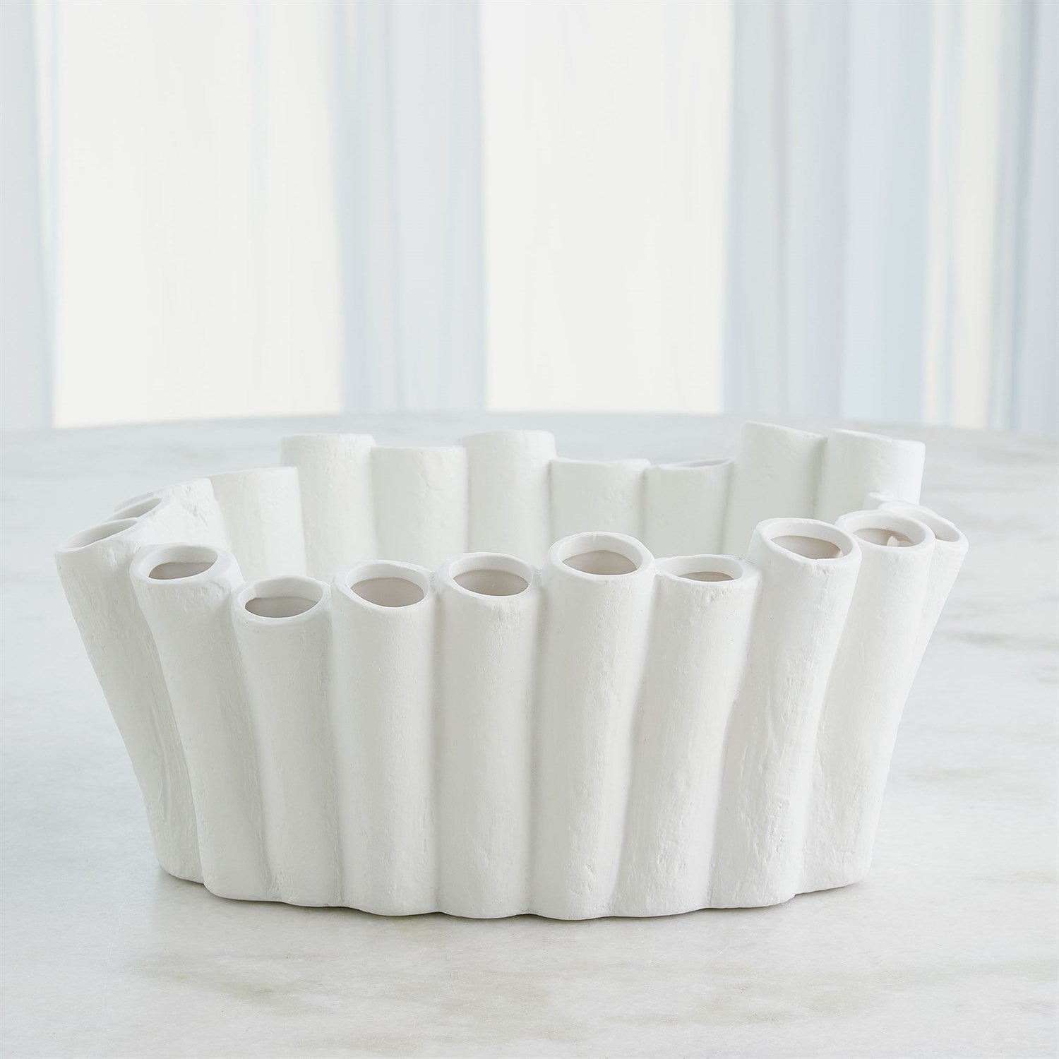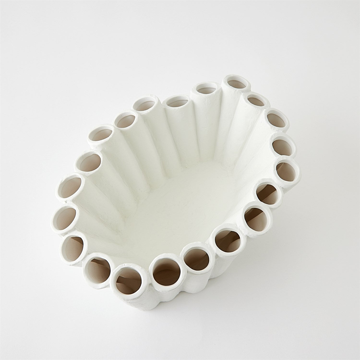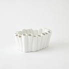 Hand-formed by skilled Italian artisans, the Stix Bowl is crafted from ceramic and features a unique design with a textured matte white finish. It's the perfect choice for showcasing individual blooms or creating a striking display with a large floral arrangement.