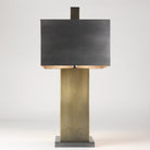 Sheet Steel gives this lamp rich textural interest, especially when dipped in acid. Bronze metal shade. Antique Brass Base and Bronze finial