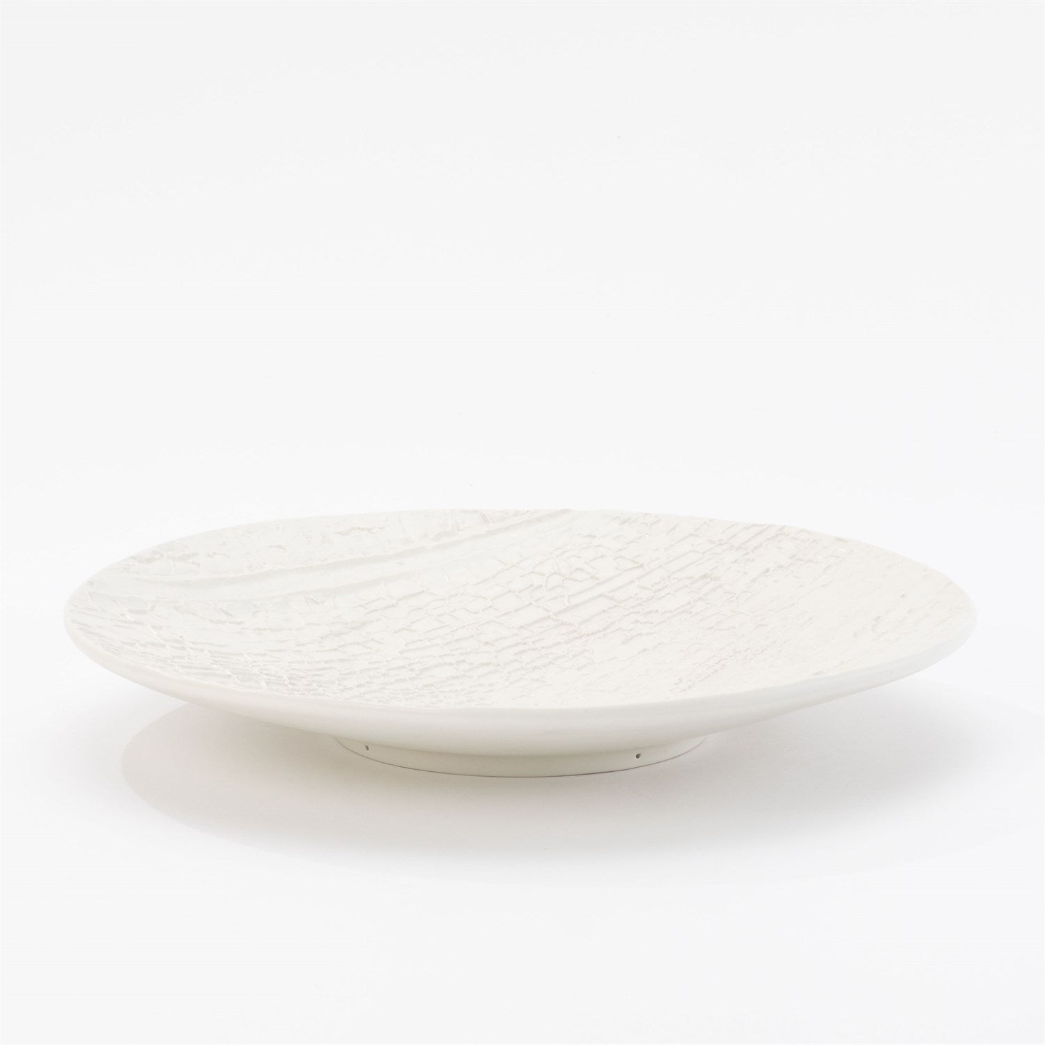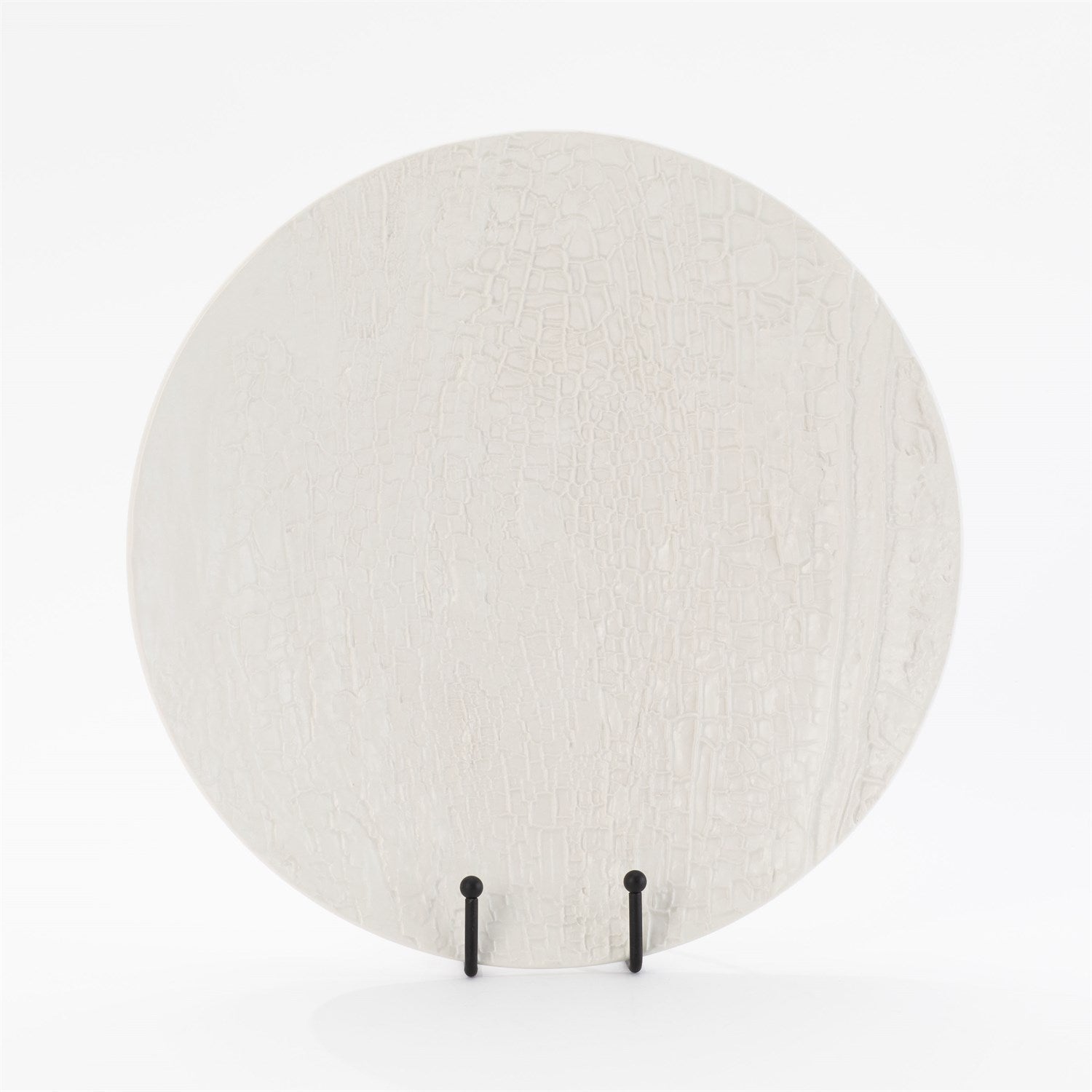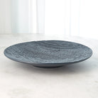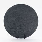 Nature is recreated in this extraordinary Tree Texture Collection. This plate is made with the relief of a burned Poplar tree. Part of the tree that died but, the remainder of the tree is still alive.Truly taken directly from tree bark, molds are cast to then reinterpret into vessels and decorative accessories. This charger is glazed in matte black and can be displayed on a charger stand.