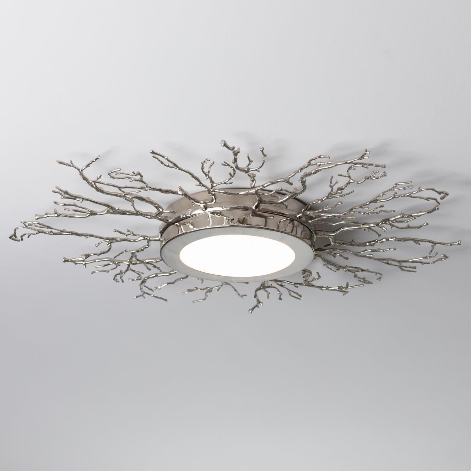 The twigs on this gorgeous Ceiling light fixture are made from sand-cast brass that is painstakingly hand polished. Holds three 9W Type A LED bulbs that are provided with this item. Available in Brass & Nickel.