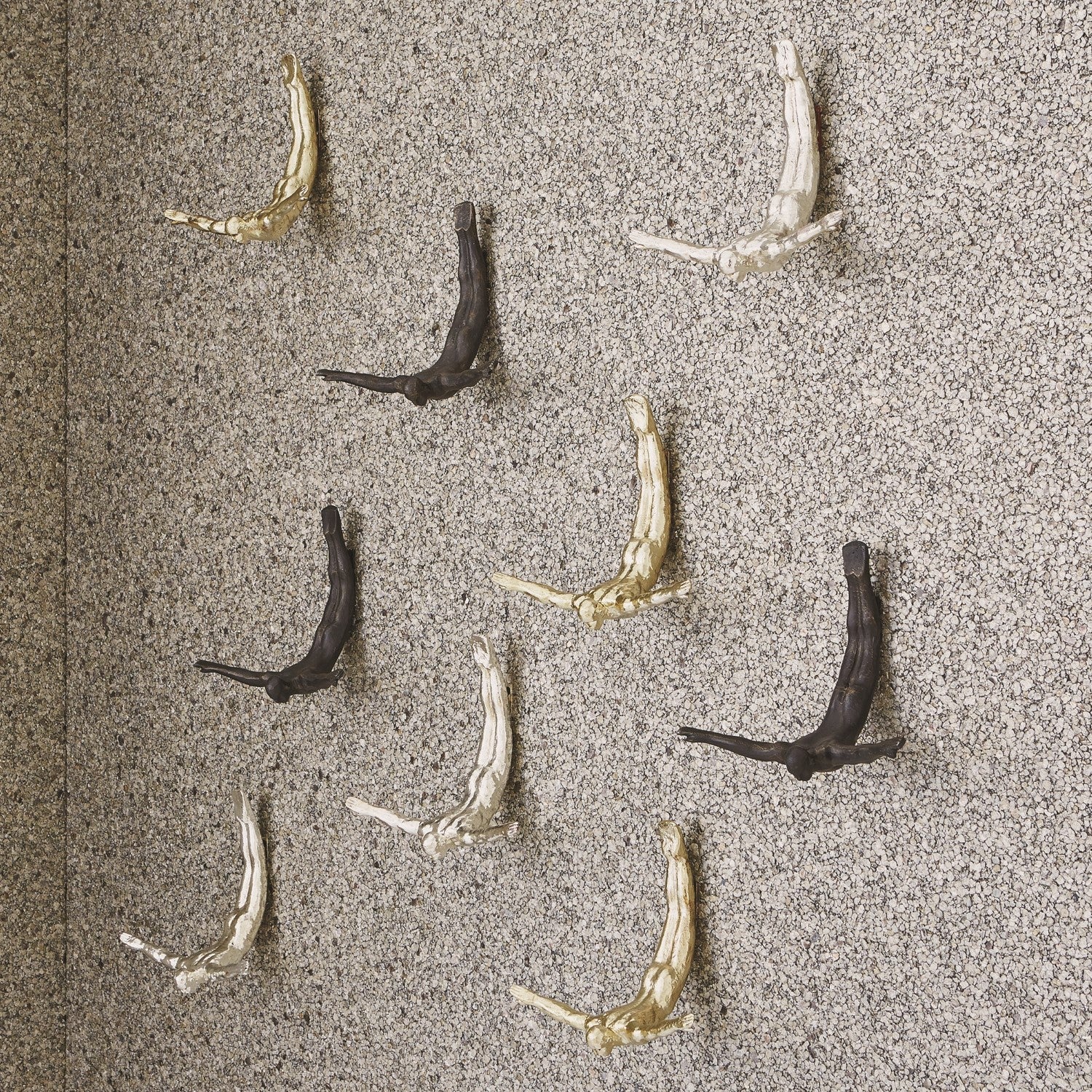 The strength and grace of the human form is beautifully captured in the iron Wall Diver - floating effortlessly and confidently towards his goal. Cover an entire wall to create a stunning design splash, or purpose a single figure as a holder for jewelry or guest towels. In any environment, the Wall Diver adds a dynamic sculptural element that will always score a perfect ten!