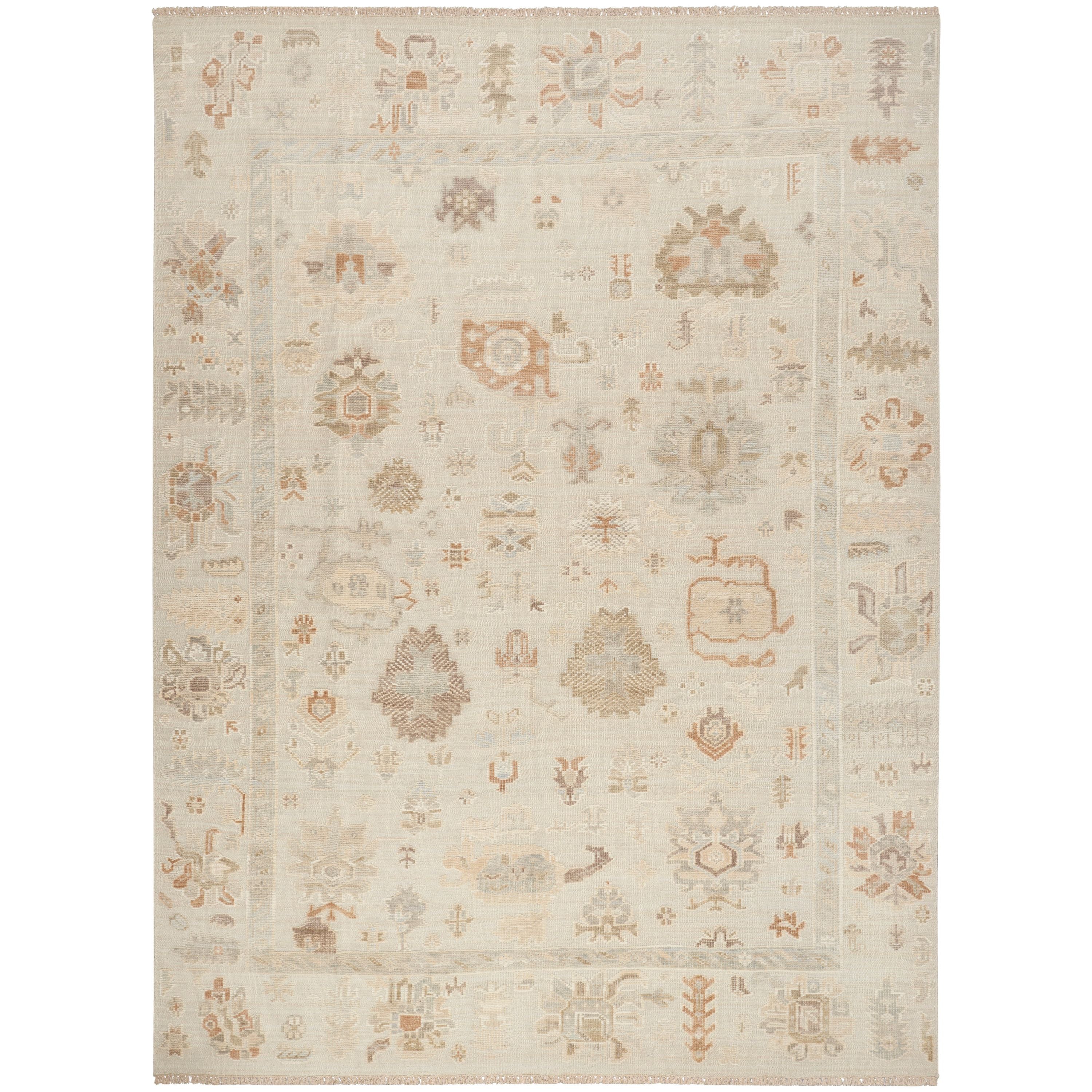 Ground your space in the timeless appeal of this vintage-inspired rug from the Whispers Collection. Presented in soft shades of cream, grey, and brown, this hand-knotted rug seamlessly complements a variety of styles while adding a storied look. Fringe edges.