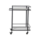 Get ready to roll this accent bar table into any room and start creating cocktails like a pro. Luxurious white Banswara marble meets dark and dramatic black cast aluminum to deliver a bar cart that's ready for happy hour. Its wheeled construction allows users to move the cart freely from room to room. Mix cocktails and pour wine from the top tier and stash all your spirits and glasses down below. Anywhere its set up, there's sure to be plenty of space for all your cocktail needs.