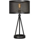 With inspiration from the Industrial Age, the forms and finishes of this decorative table lamp keep your factory-style room at the forefront of design trends. The traditional tripod base and circular mesh-metal shade are framed in steel and finished in black. Enhance the lamp's vintage essence by installing an Edison-style bulb. Bulb not included.
