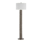 The perfect finishing touch with functional purpose, this stylish floor lamp is a great choice for today's neutral interiors. Its warm charcoal grey hand-painted finish, pewter details and off-white linen drum shade unite to light up any modern or transitional space. Try it in a bedroom, living room, or dining room for an instant update.