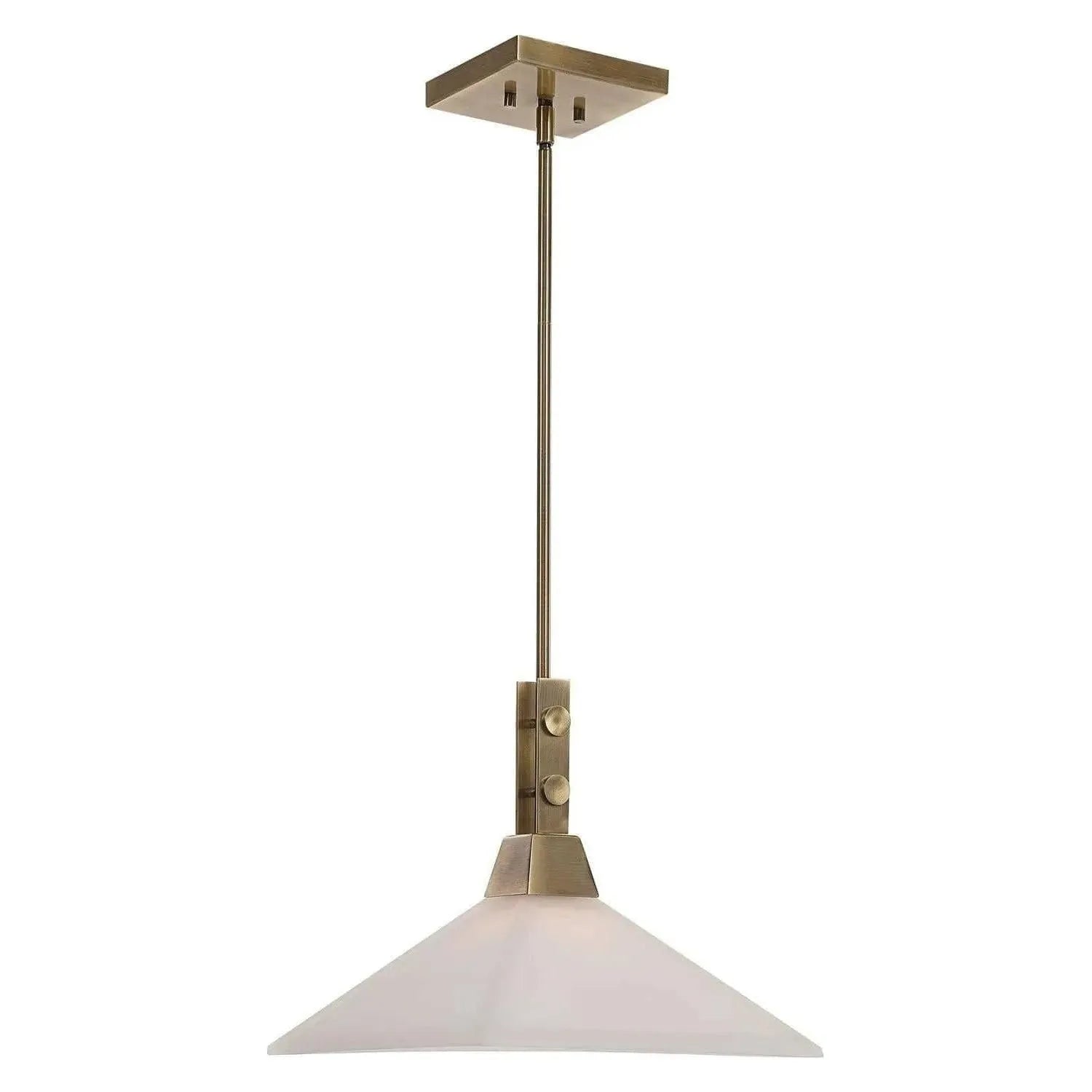 Enriched Industrial Style With A Hint Of Craftsman Lines Bring Together This Elegant Pendant Finished In Warm Aged Brass And Etched White Frosted Glass Shades. With 1-100 Watt Max, Edison Socket And Includes 15' Wire, 3-12'' Stems And 1-6'' Stem For Adjustable Installation.