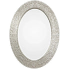 This Oval Frame Features A Reeded Surface With A Hammered Texture And A Burnished Silver Wrapped Finish. Mirror Is Beveled. May Be Hung Horizontal Or Vertical.